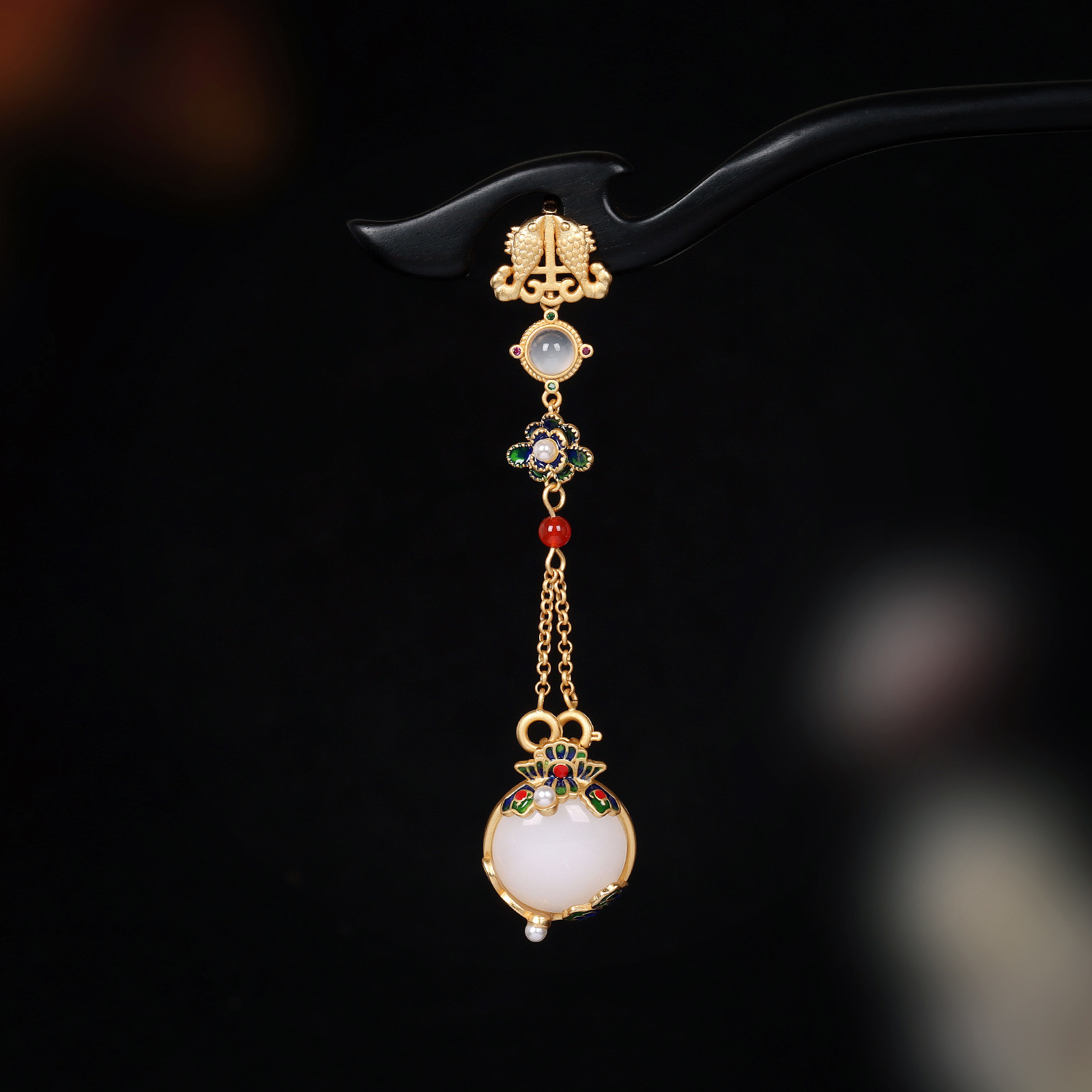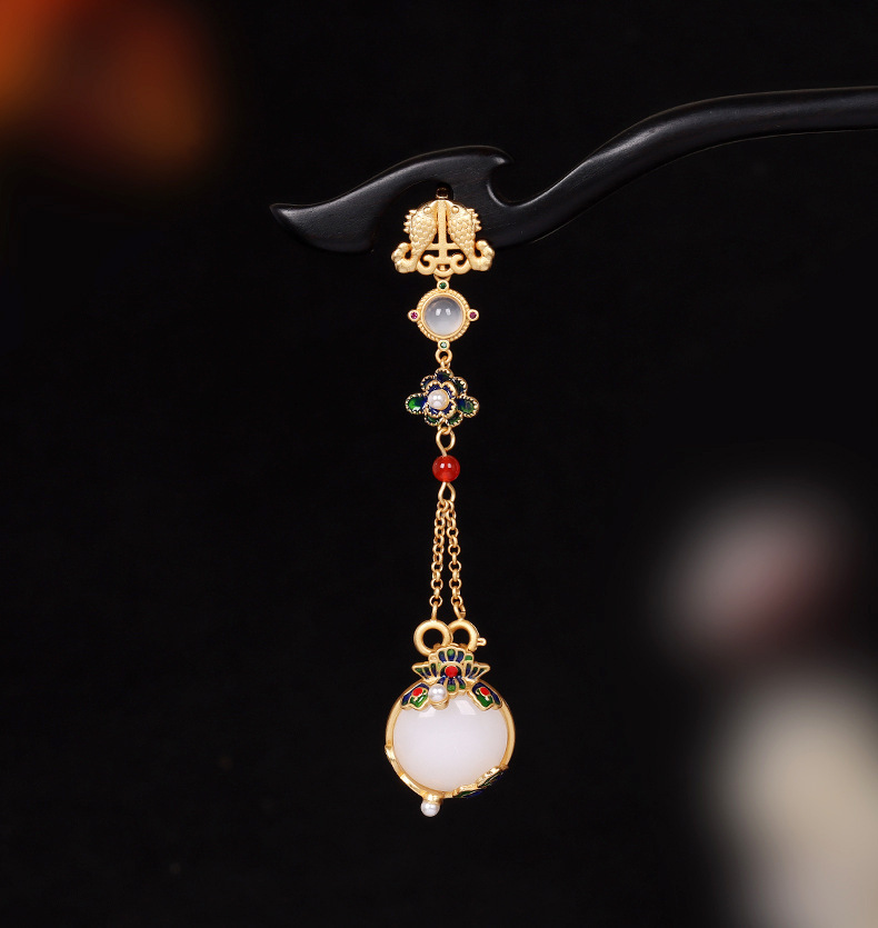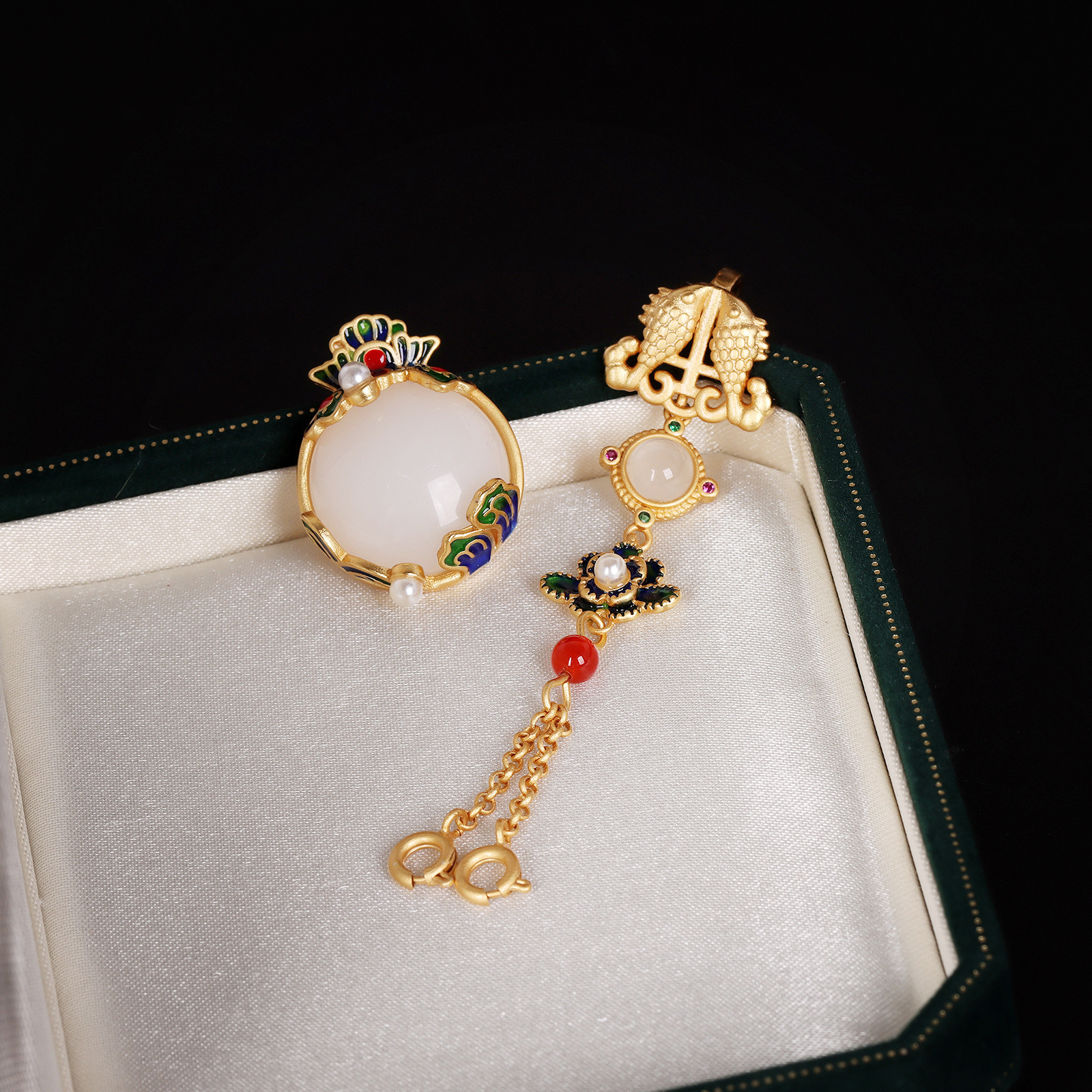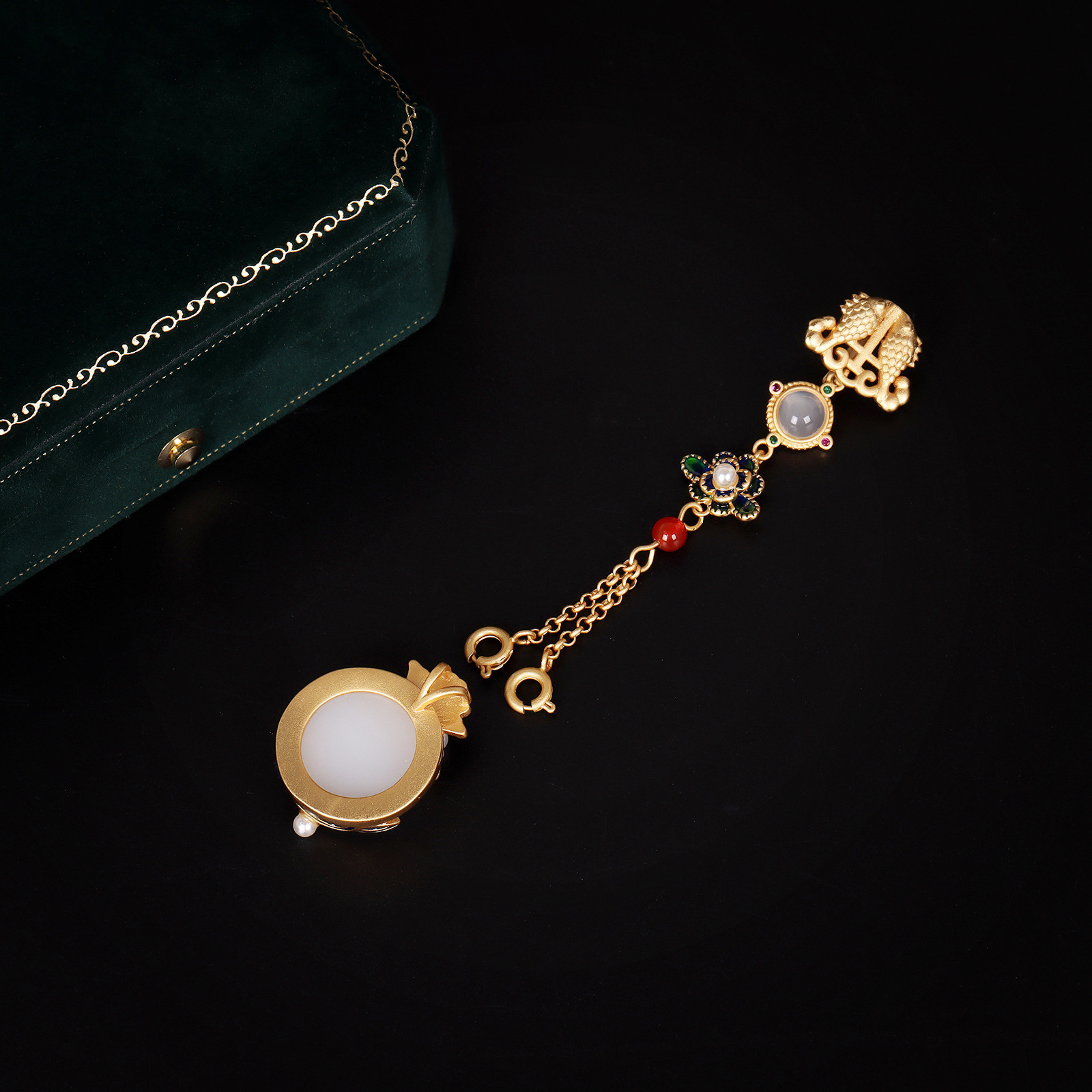 中国风复古旗袍珐琅压襟扣金色仿和田玉中式吊坠挂件两用款胸饰