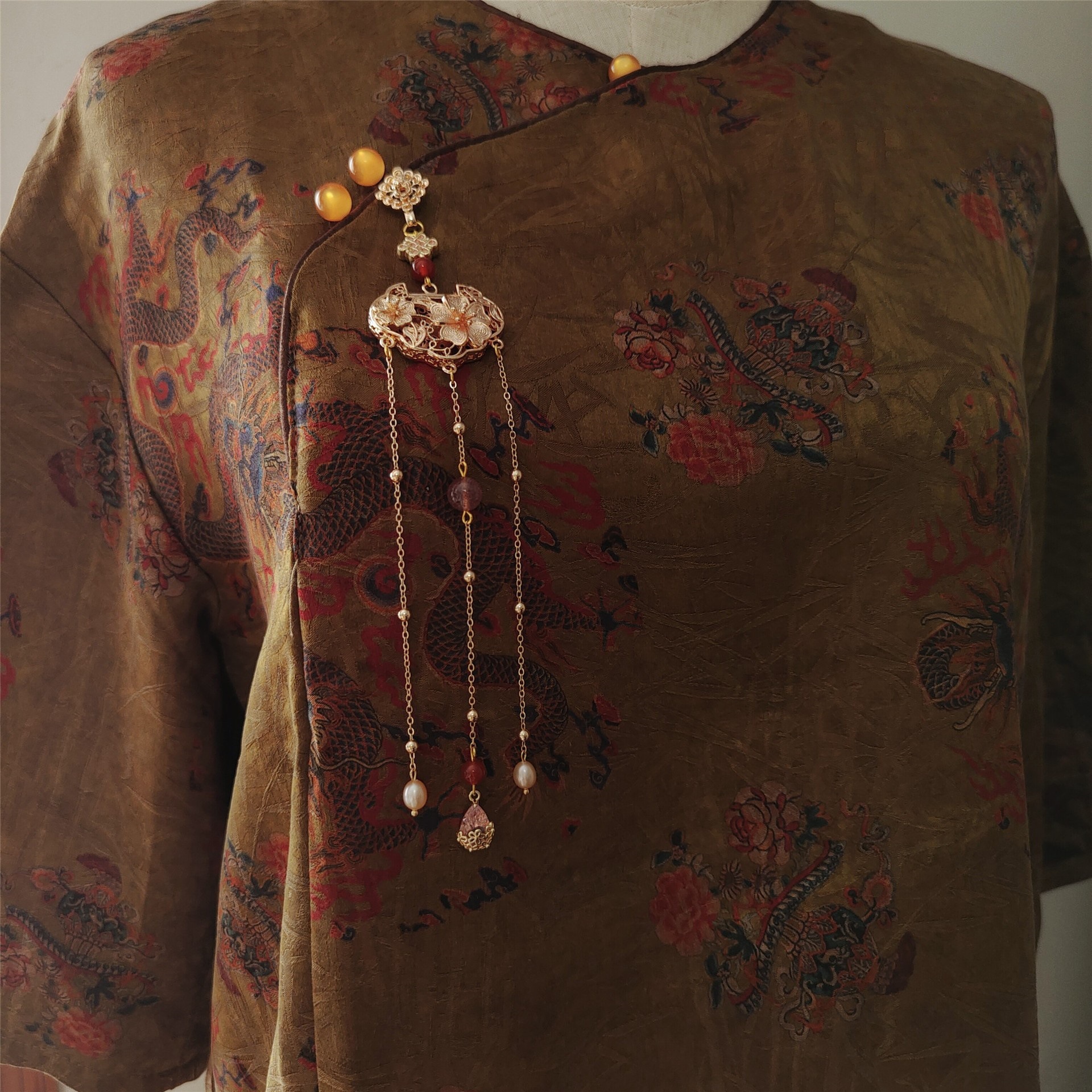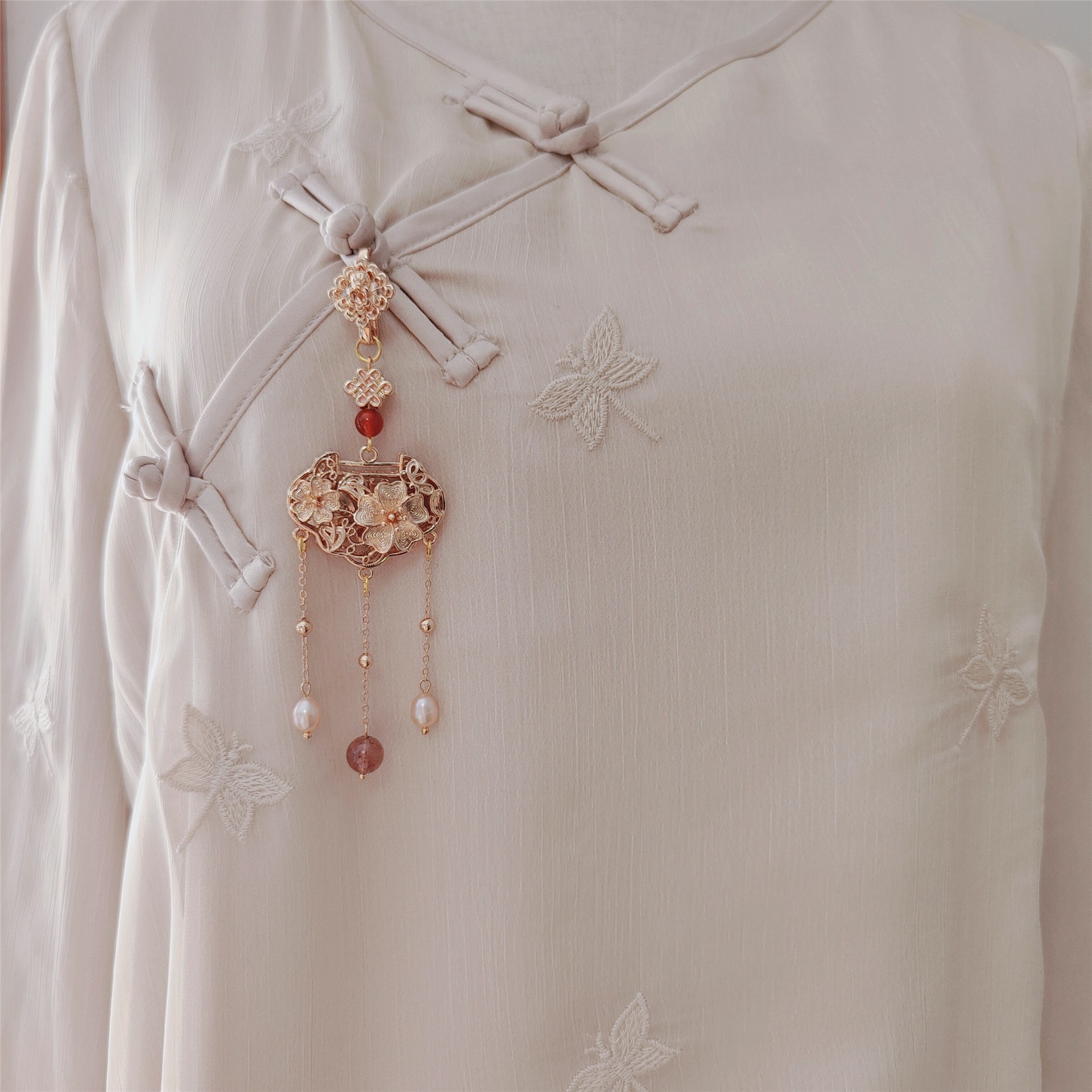 【繁花似锦】古风原创天然珍珠旗袍压襟扣挂件流苏汉服茶服配饰女