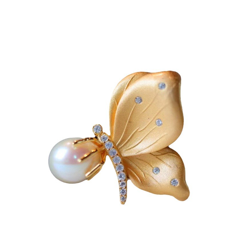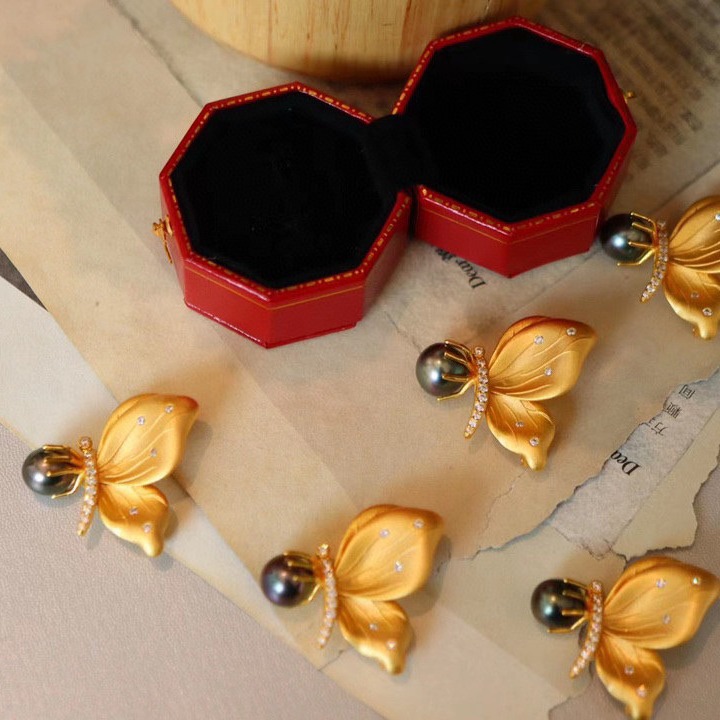 蝴蝶胸针高档女原创设计大溪黑珍珠胸针胸花纯银别针固定衣服百搭