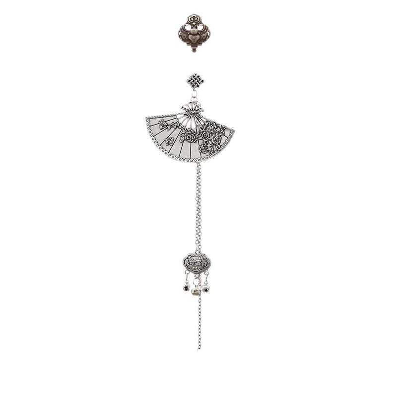 中国风复古梅花扇胸针女旗袍压襟扣铃铛流苏挂件汉服别针纯银配饰