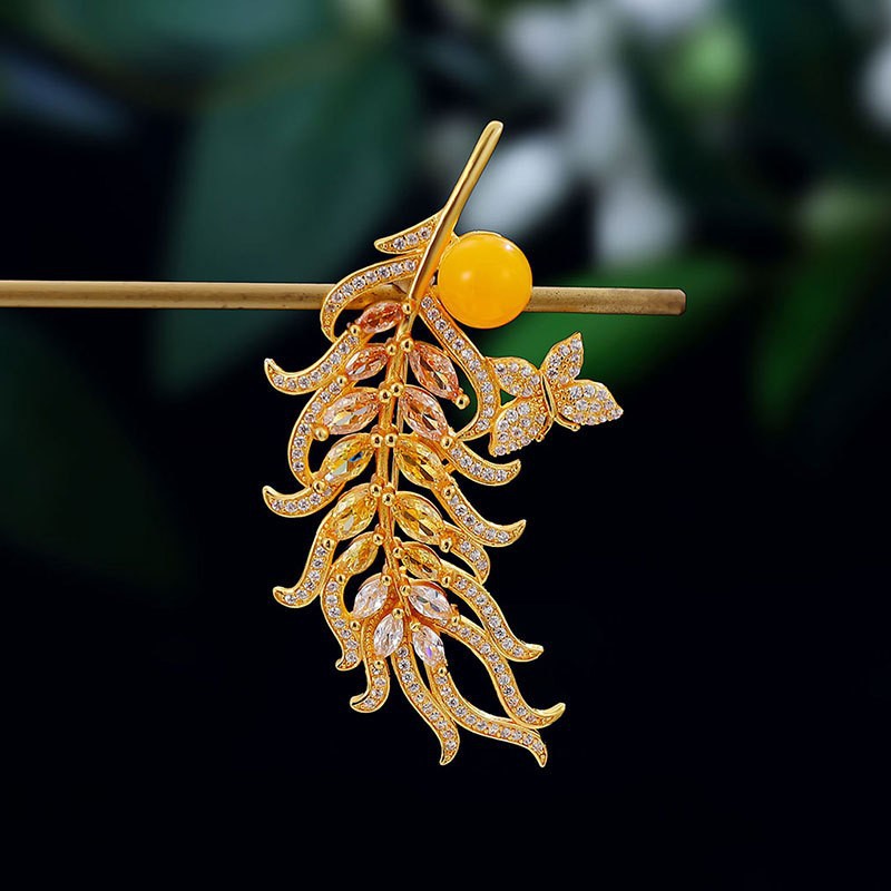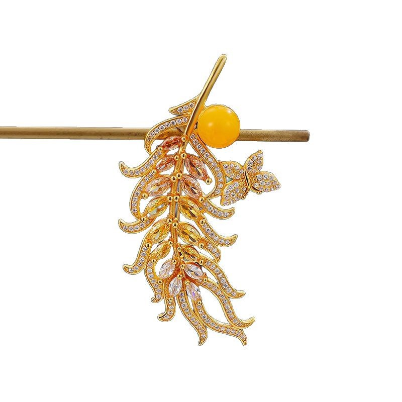大麦麦穗郁金香小花金色闪钻锆石珍珠彩钻羽毛胸针胸花