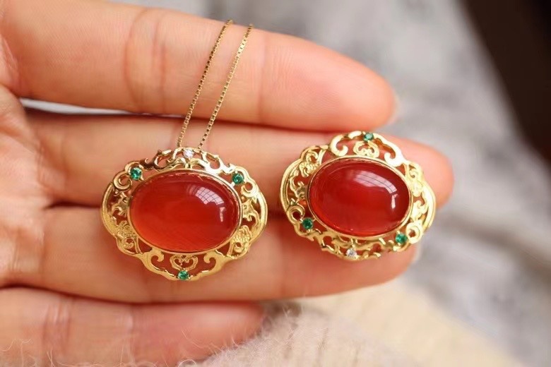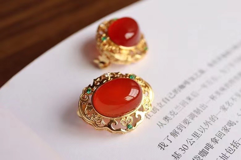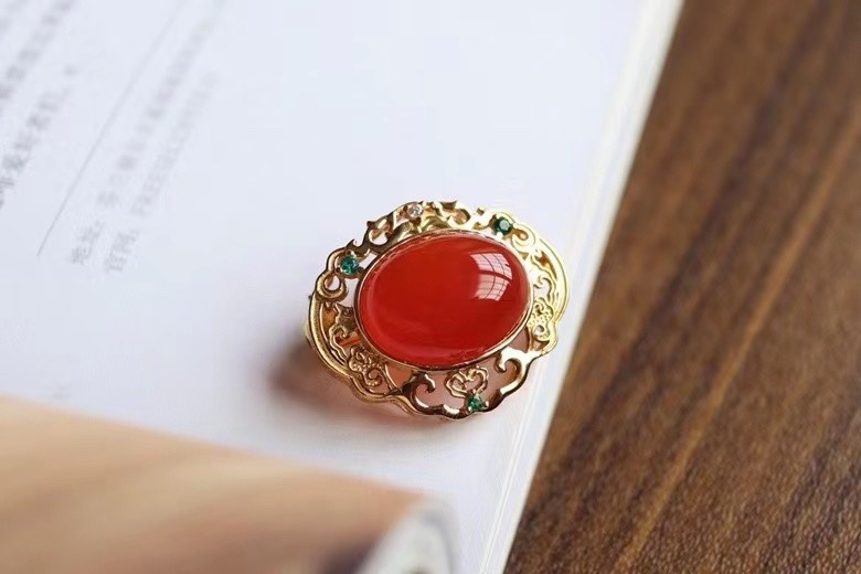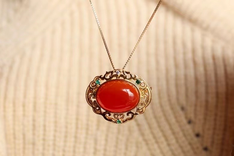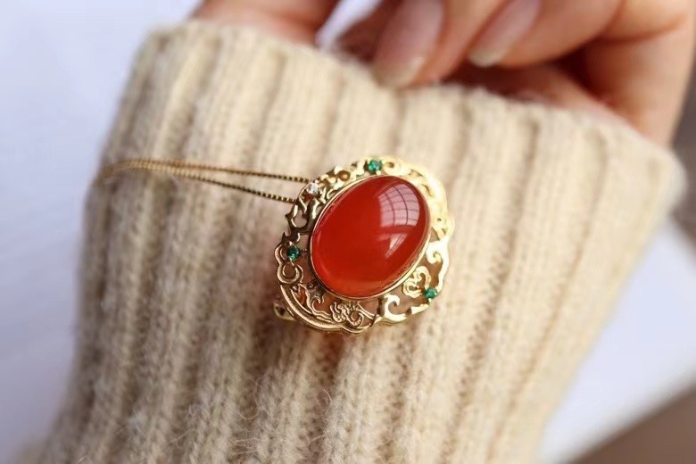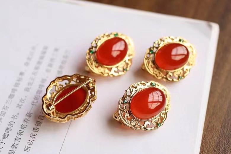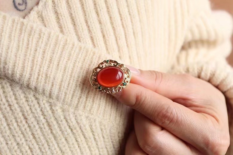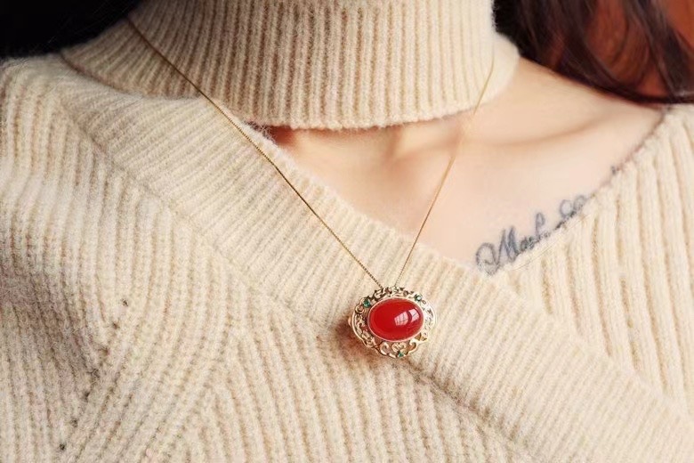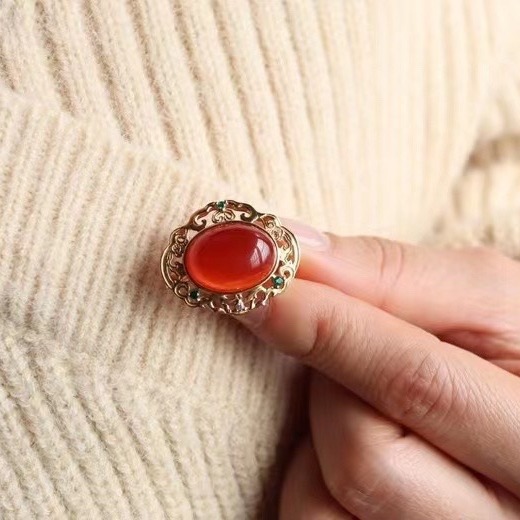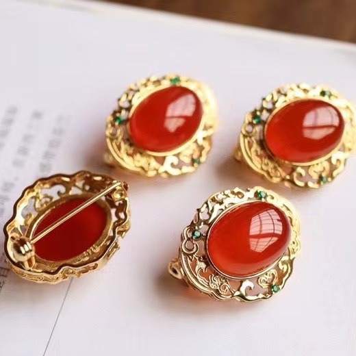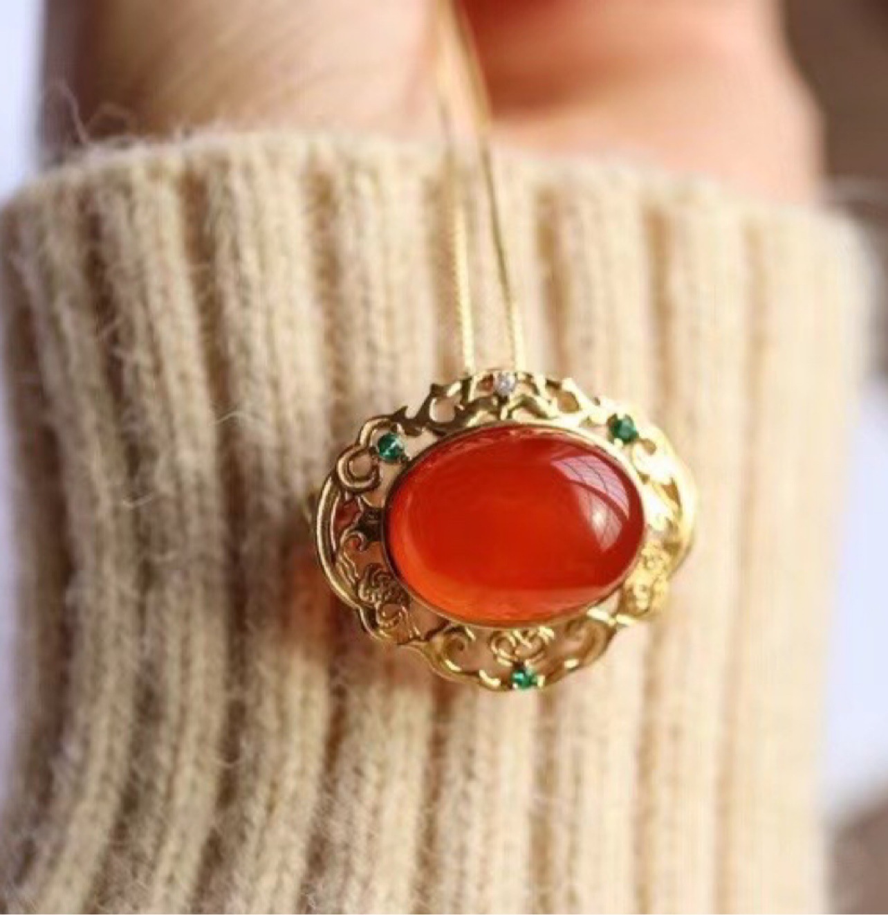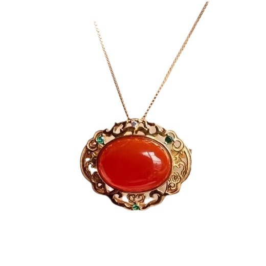 乘风南方南方纯银饰品天然南红玛瑙女款民族风复古轻奢胸针项链