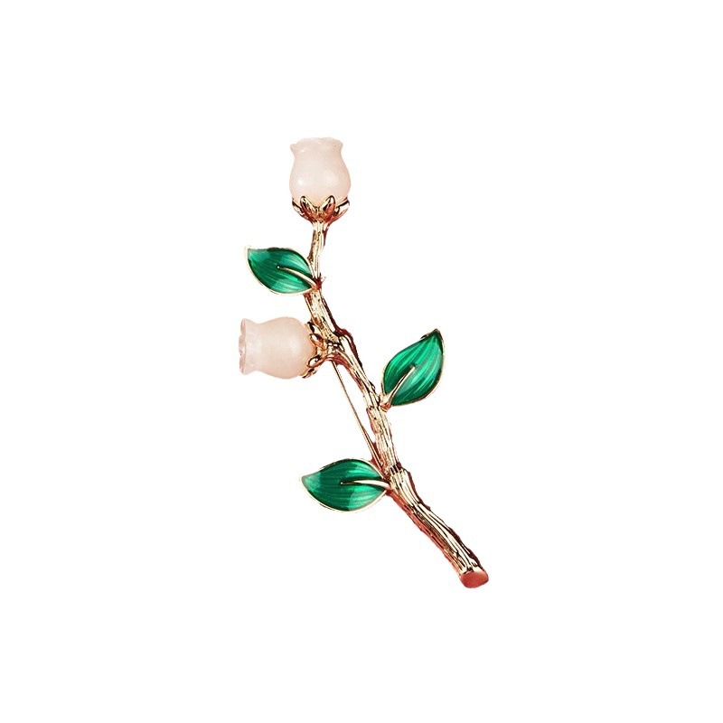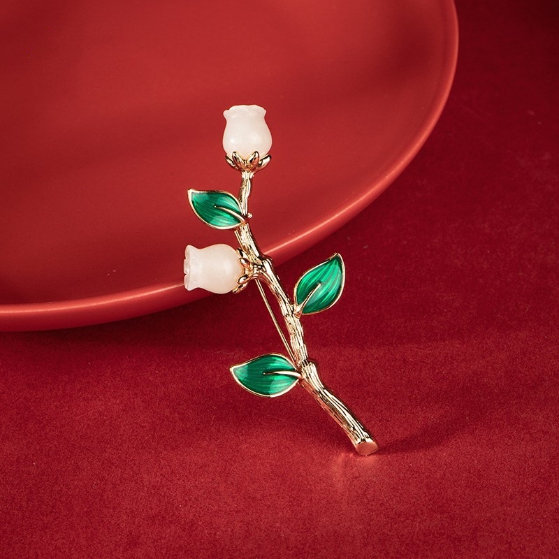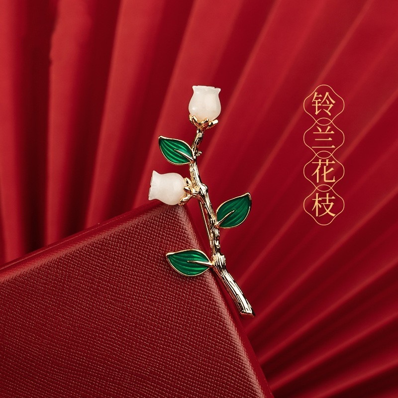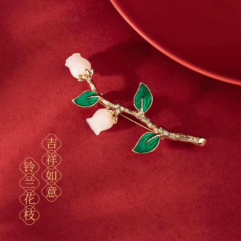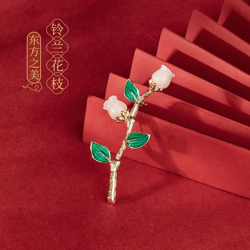 宫廷名铃兰花珐琅彩和田玉胸针奢华女胸花新款送妈妈礼物