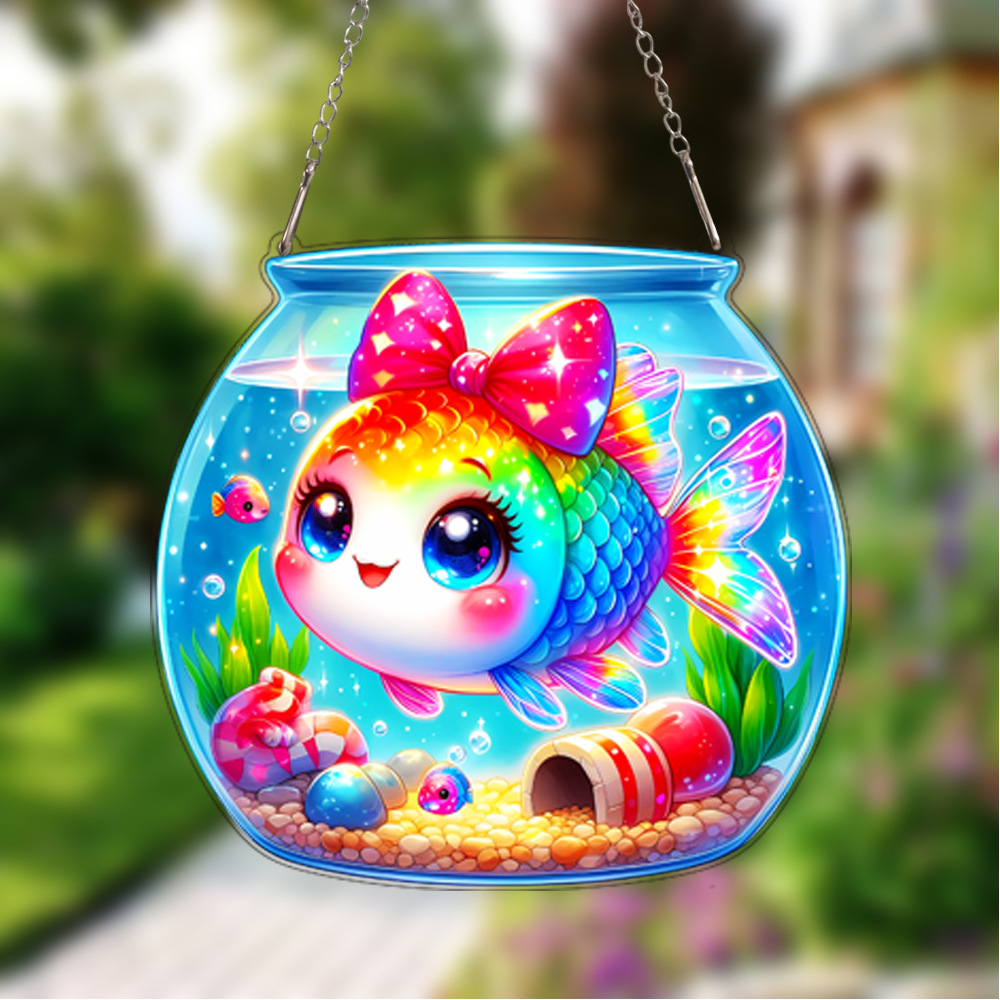 跨境卡通可爱鱼缸金鱼亚克力窗户门挂艺术节日场景装饰挂件挂饰