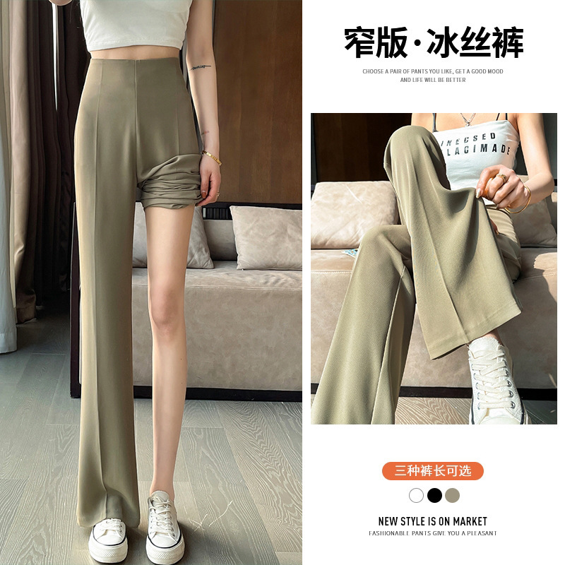 黑色微喇西装裤女夏季薄款梨型身材高腰显瘦直筒休闲垂感喇叭裤子