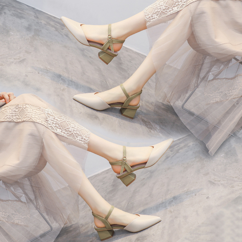 时装包头凉鞋女新款夏秋中跟粗跟仙女风气质一字带罗马法跨境
