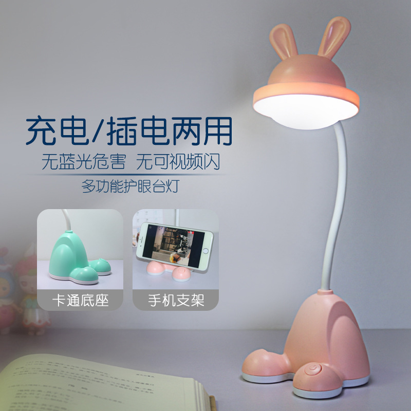 简约桌面兔子台灯LED护眼书桌灯可调光卧室床头台灯卡通手机支架
