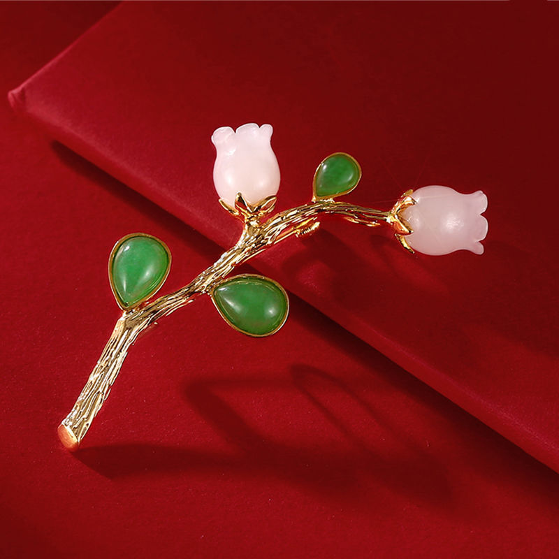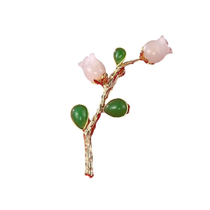 S925纯银花枝胸针时尚珐琅彩花朵别针优雅气质民族风奢华简约女款