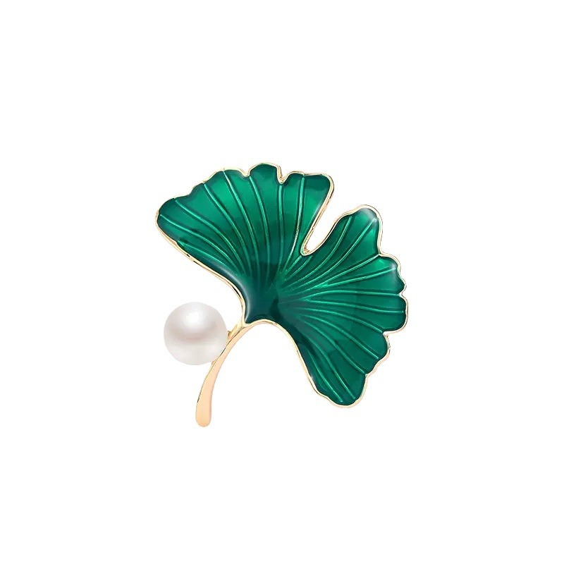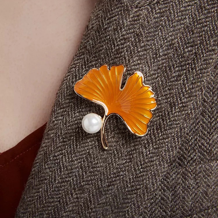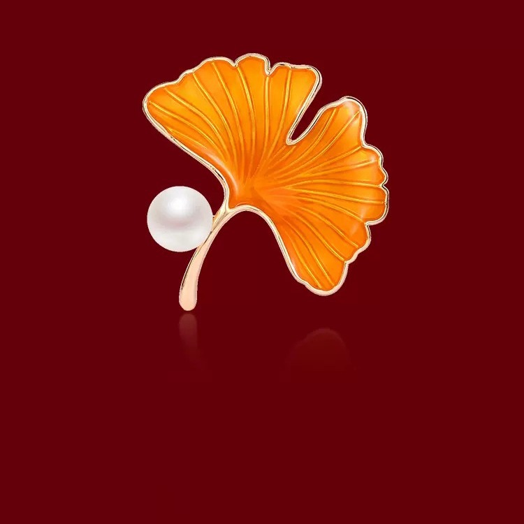 国潮纯银胸针女杏叶别针彩绘珐琅工艺镶贝珠旗袍气质妈妈生日礼物