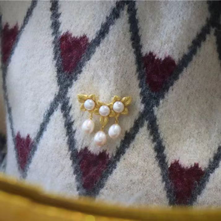 三花珍珠胸针