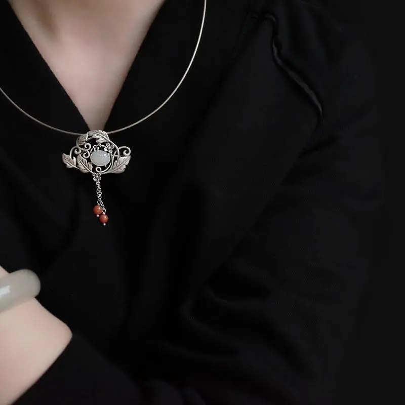 新款镀s925银饰品纯手工民族风复古流苏胸针夸张奢华吊挂坠女
