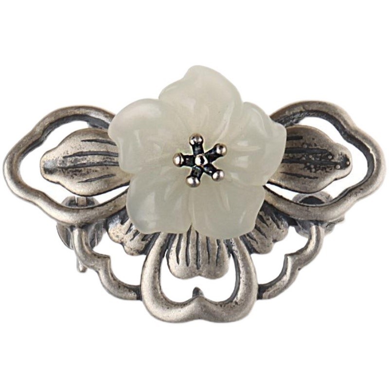 新款镀S25饰品和田白玉镀手工女款民族风复古风中国风气质胸