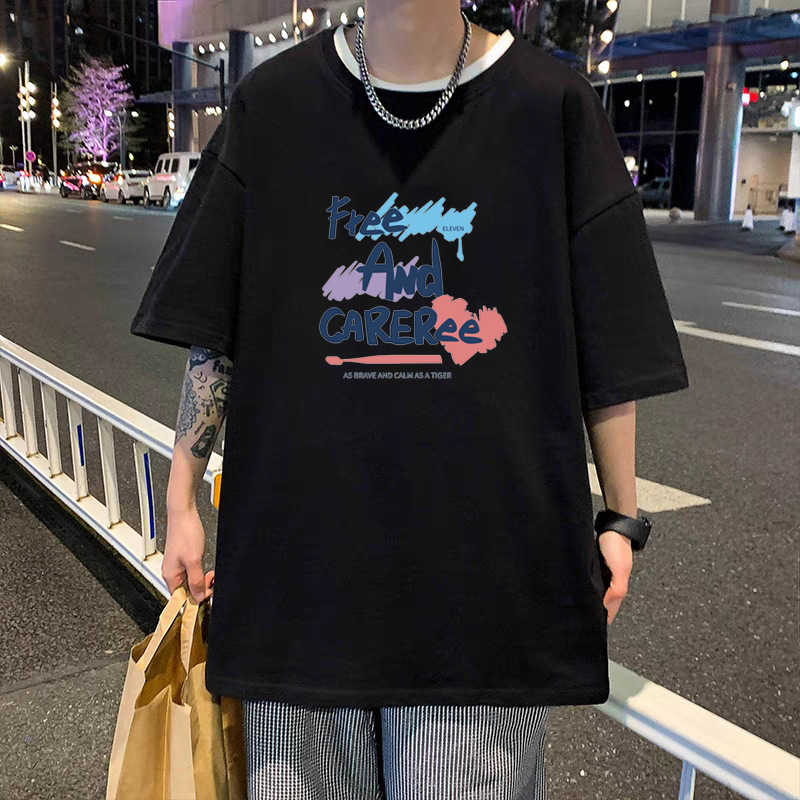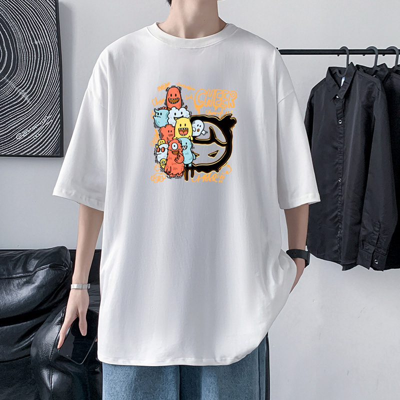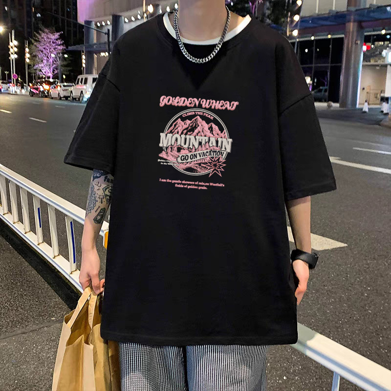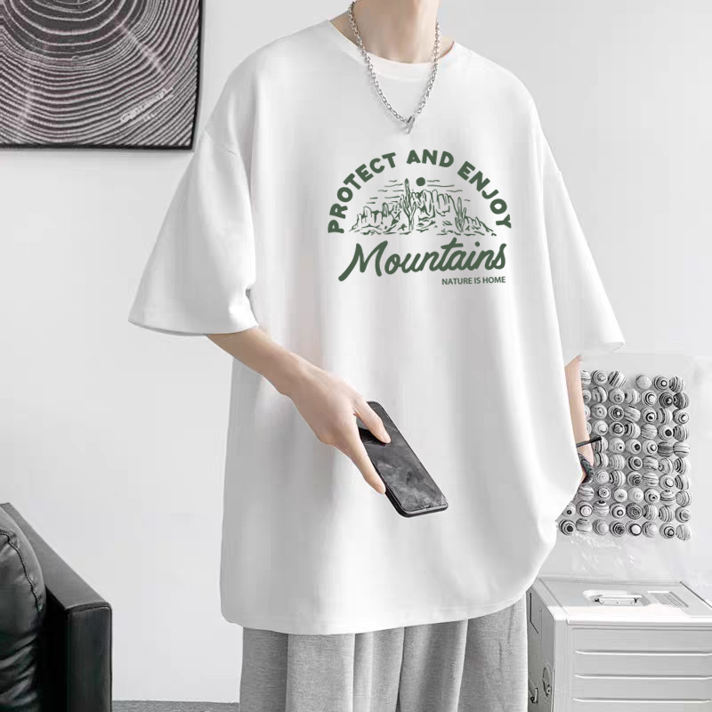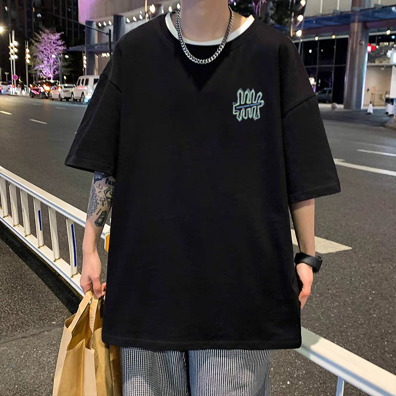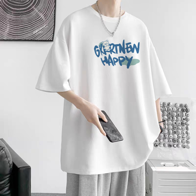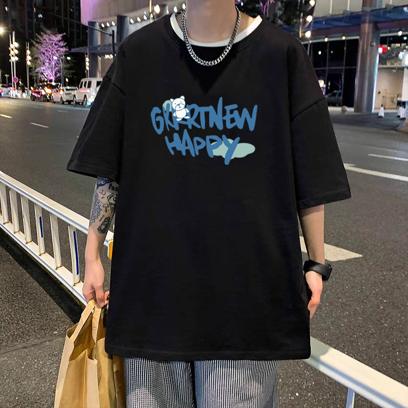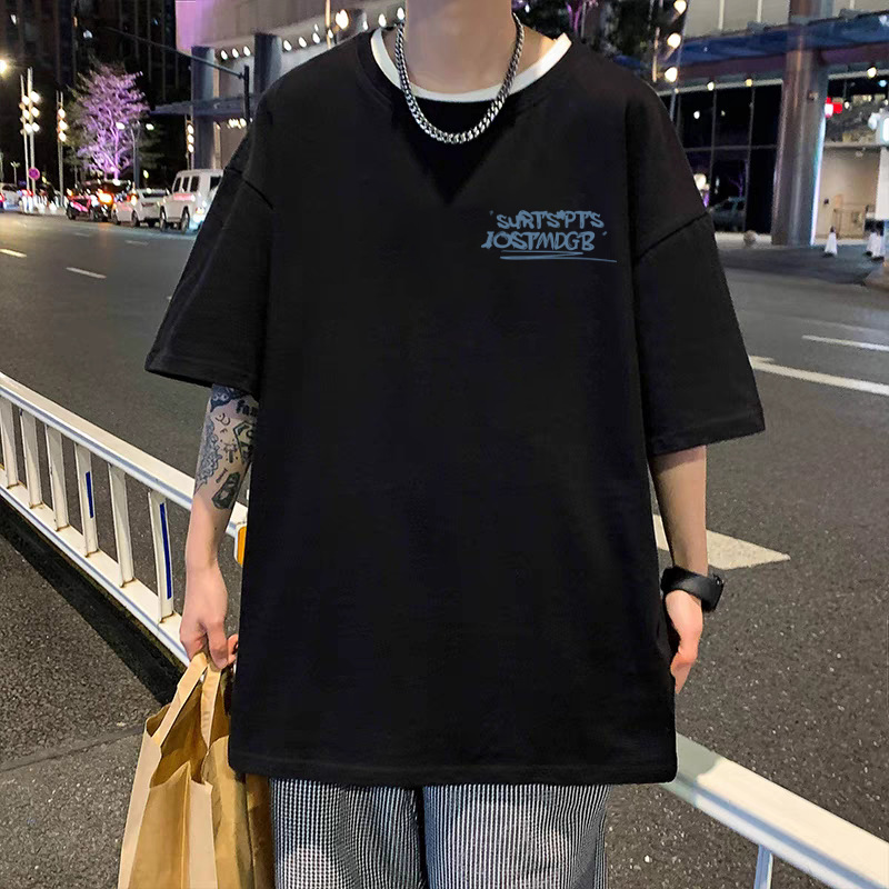 夏季纯棉短袖t恤男装重磅新款潮牌印花宽松圆领打底衫百搭上衣男