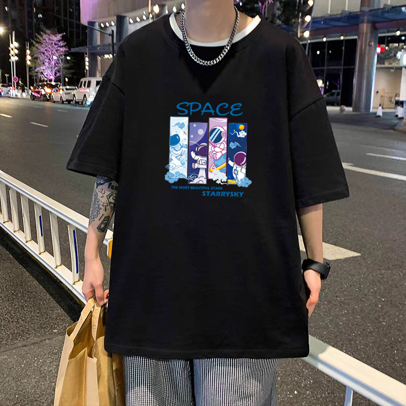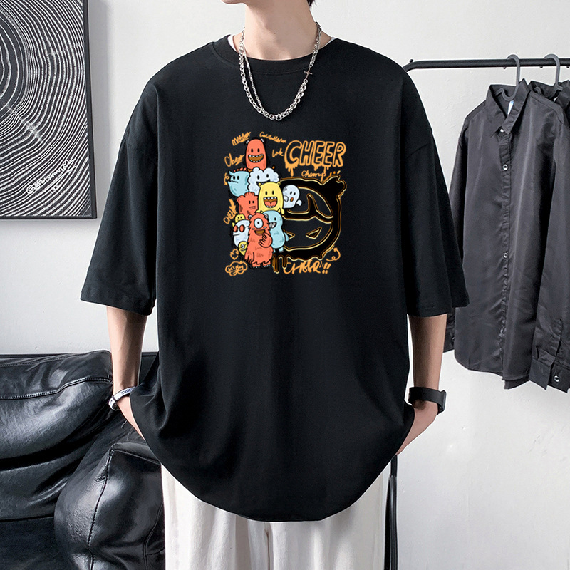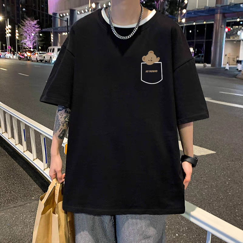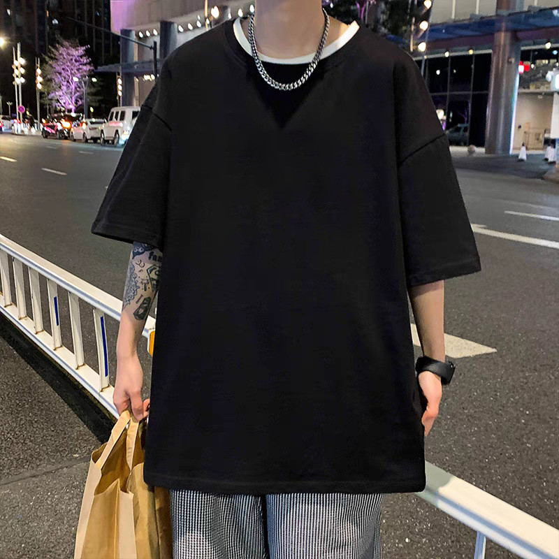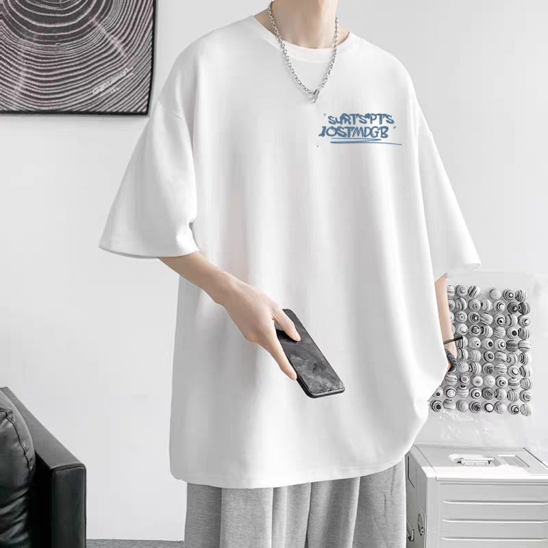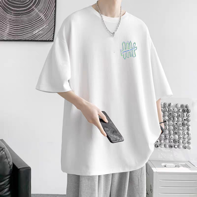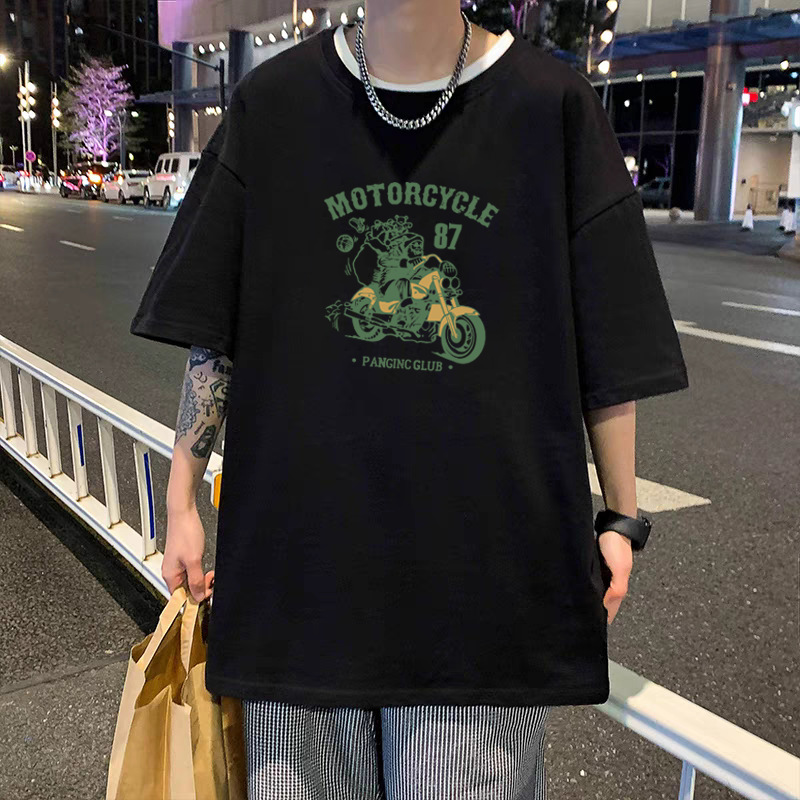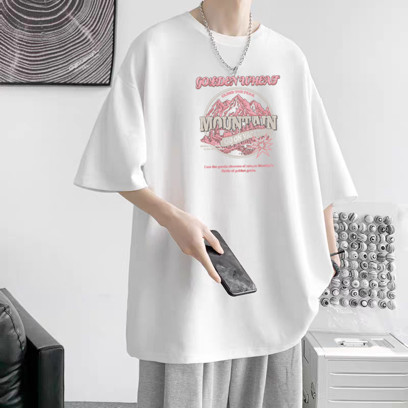 夏季纯棉短袖t恤男装重磅新款潮牌印花宽松圆领打底衫百搭上衣男