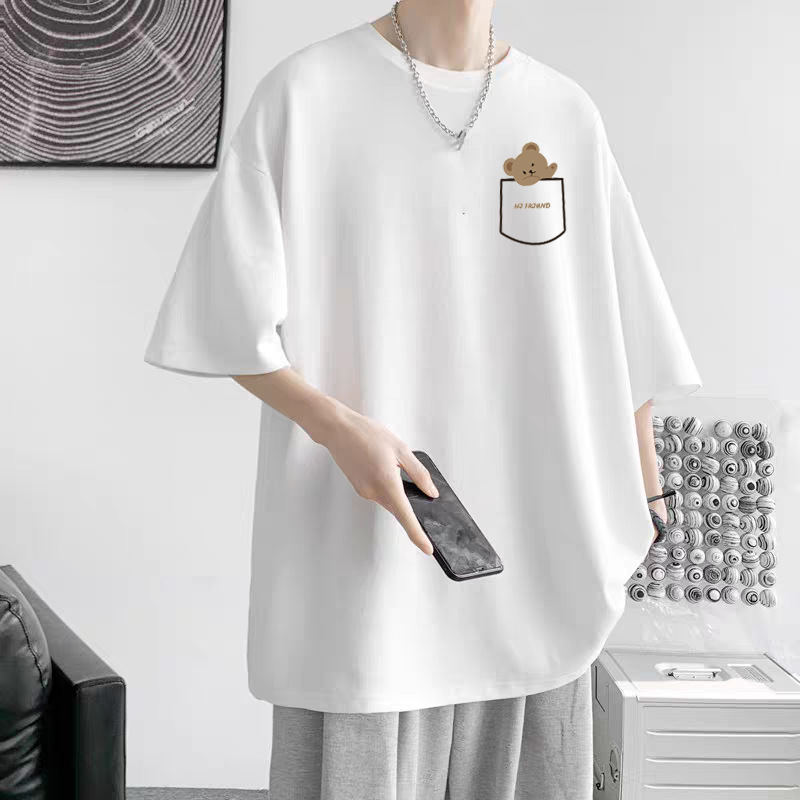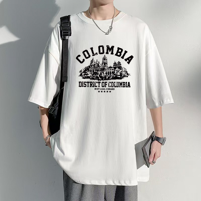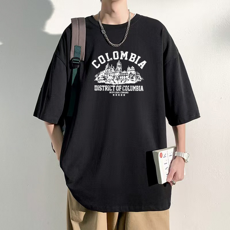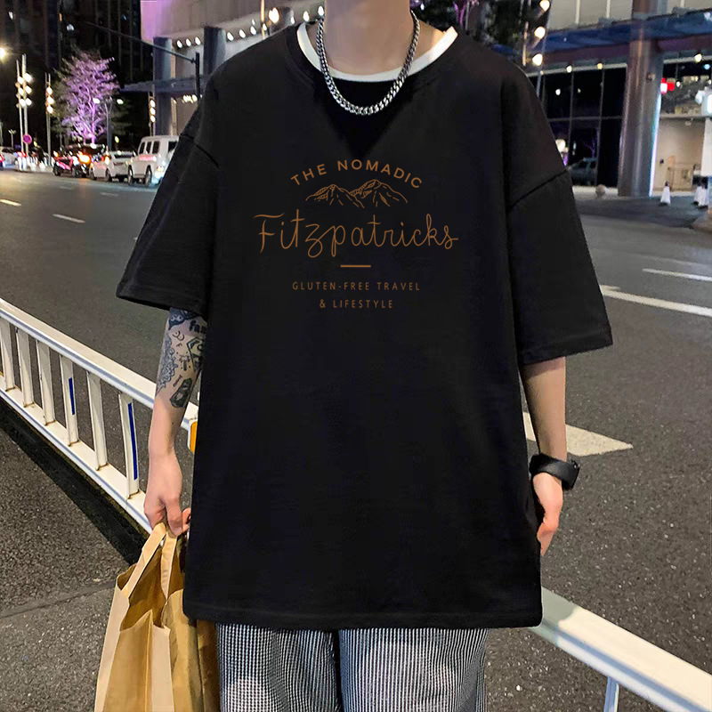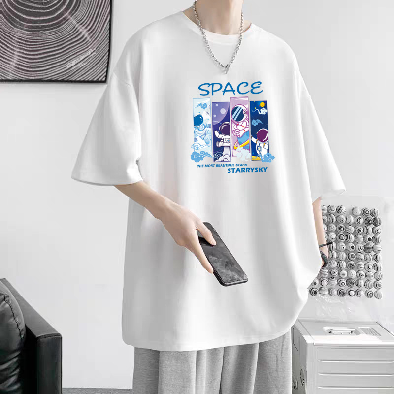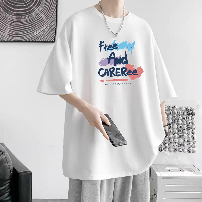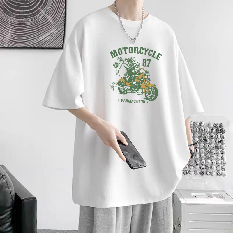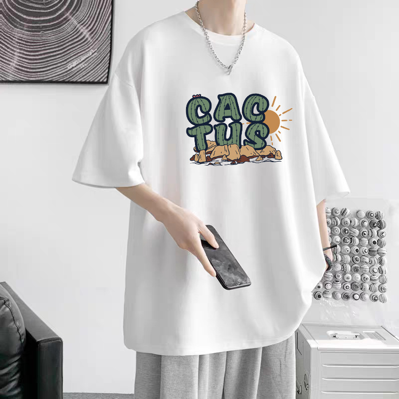 夏季纯棉短袖t恤男装重磅新款潮牌印花宽松圆领打底衫百搭上衣男