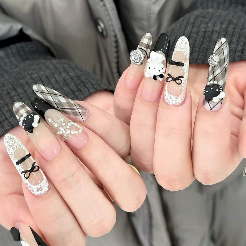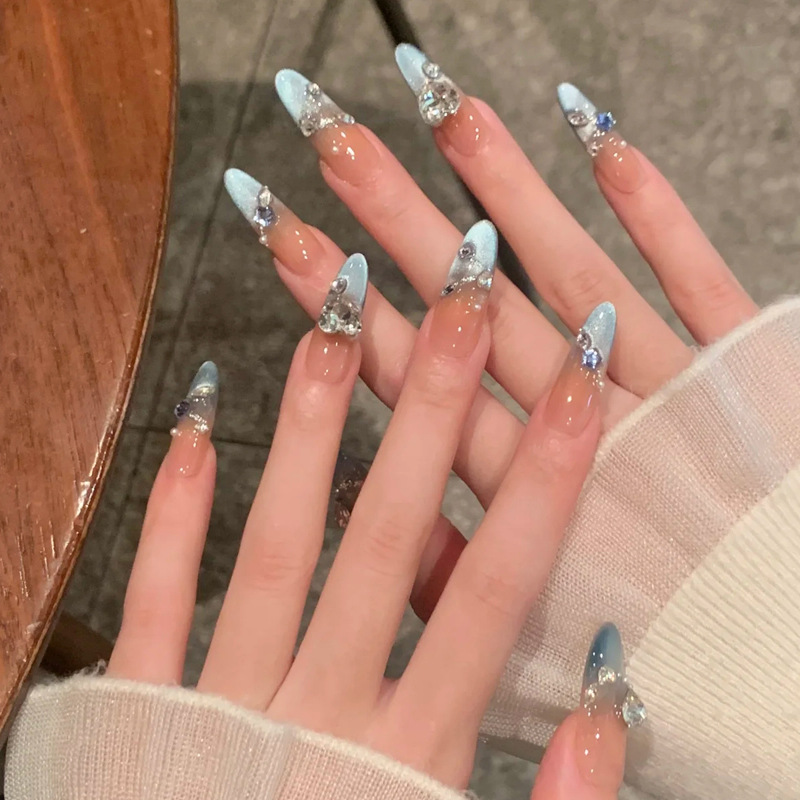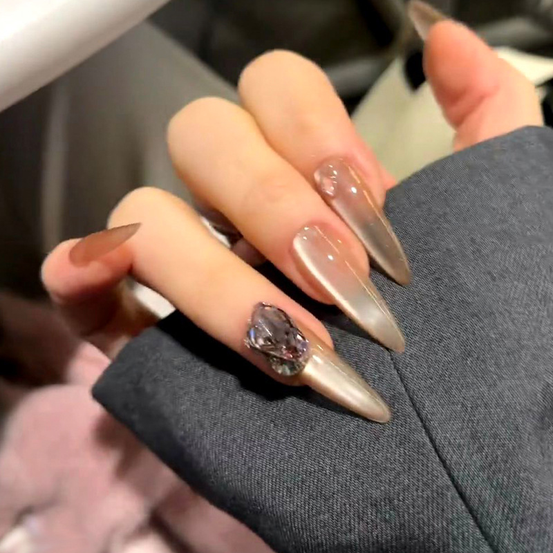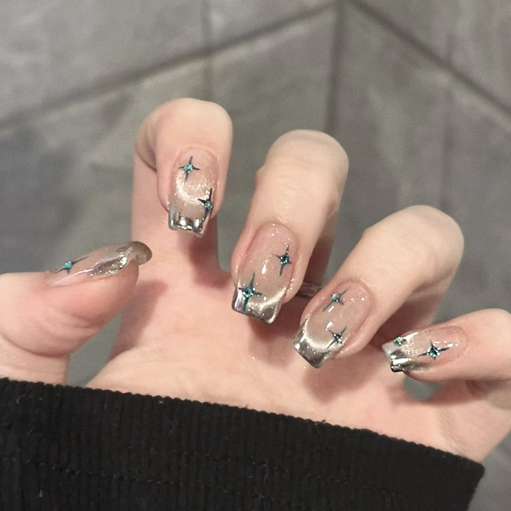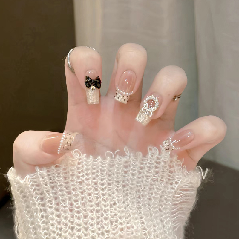 小红书爆款穿戴甲高级感猫眼水钻法式手工美甲甲片辣妹纯欲假指甲