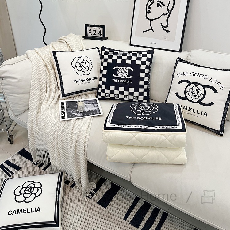 法式风山茶花抱枕被子二合一两用盖毯沙发抱枕毯车载办公室冬加厚