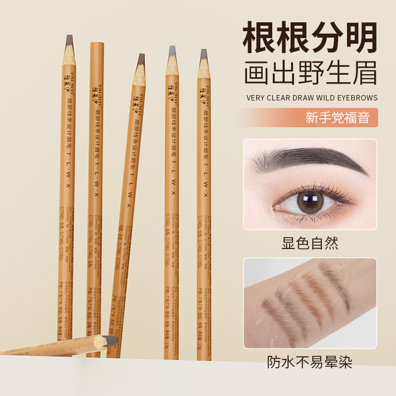 纹绣眉笔野生线条定位笔木质硬芯防水防汗化妆纹绣师专用砍刀眉笔
