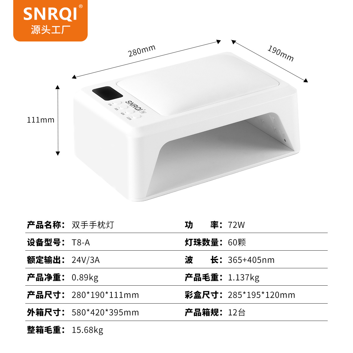 T8双手手枕美甲灯穿戴甲大空间美甲烤灯大功率光疗灯速干美甲机