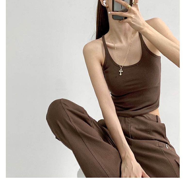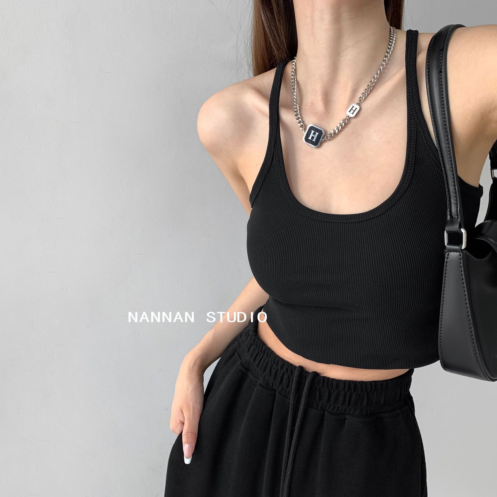 纯色紧身细肩带打底工字背心女性感辣妹修身短款露脐运动吊带上衣