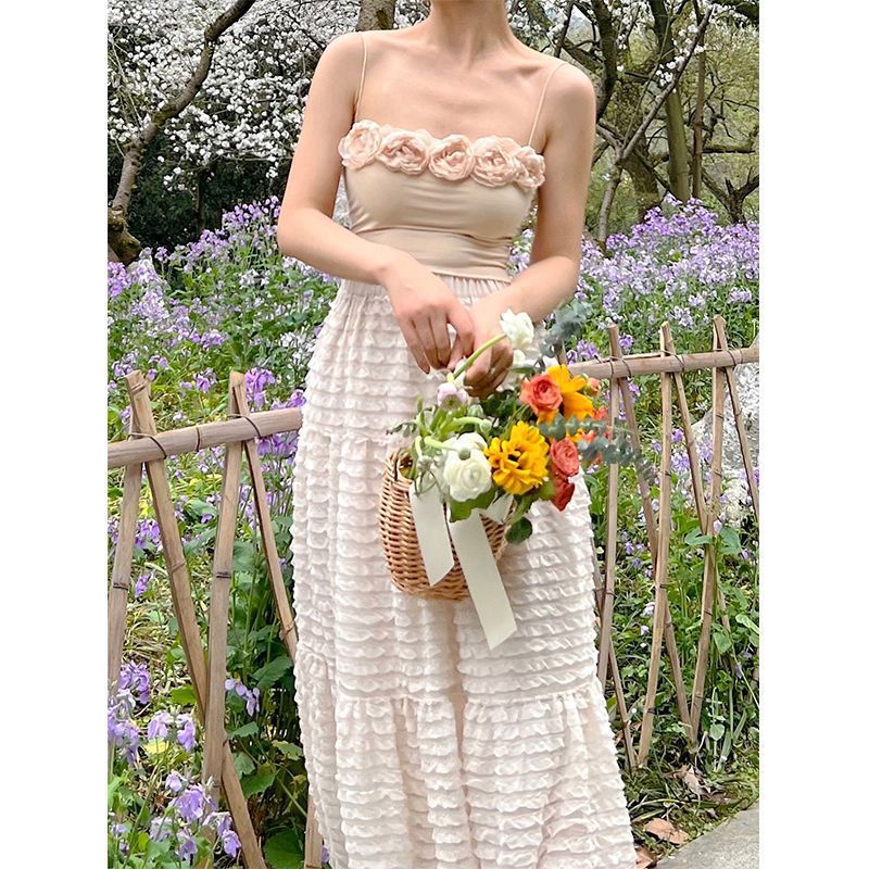 立体花朵小吊带背心夏季短款甜辣妹纯欲露肩性感上衣