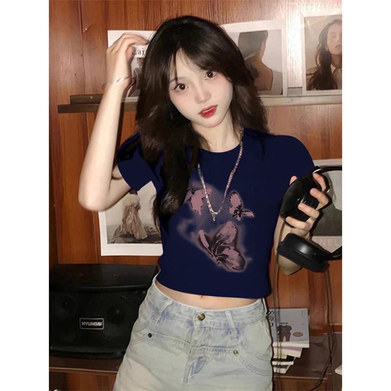 美式bm辣妹风短袖T恤女装夏季小众别致高级感正肩不撞款百搭上衣