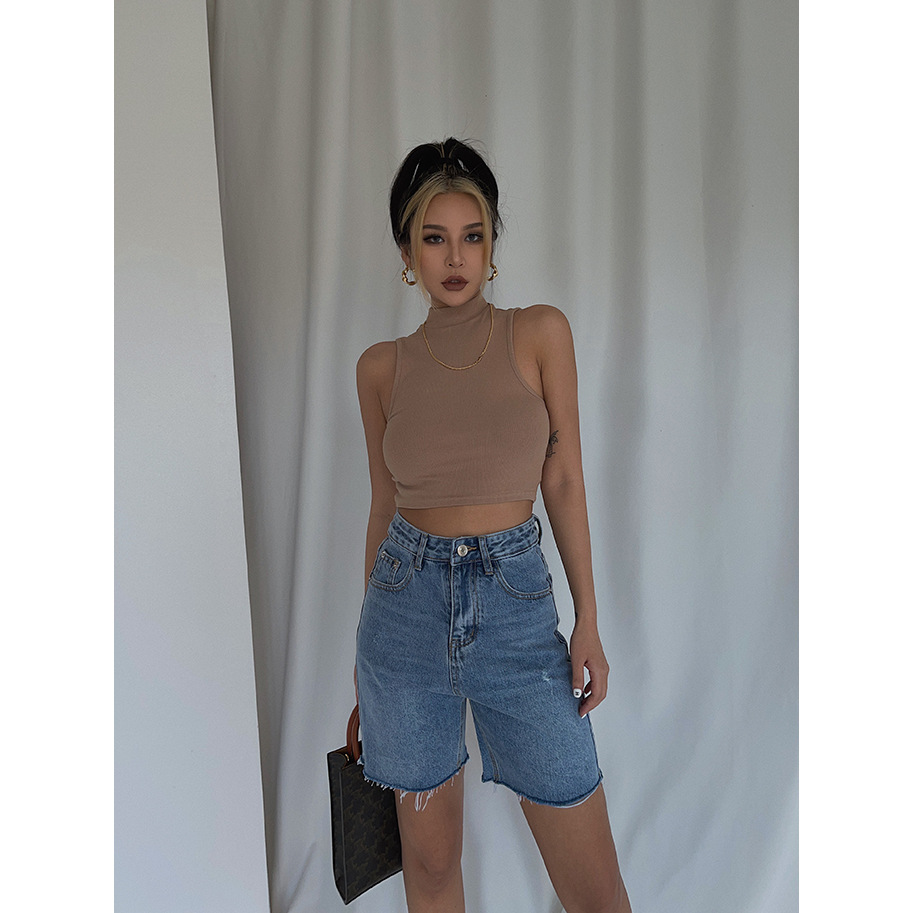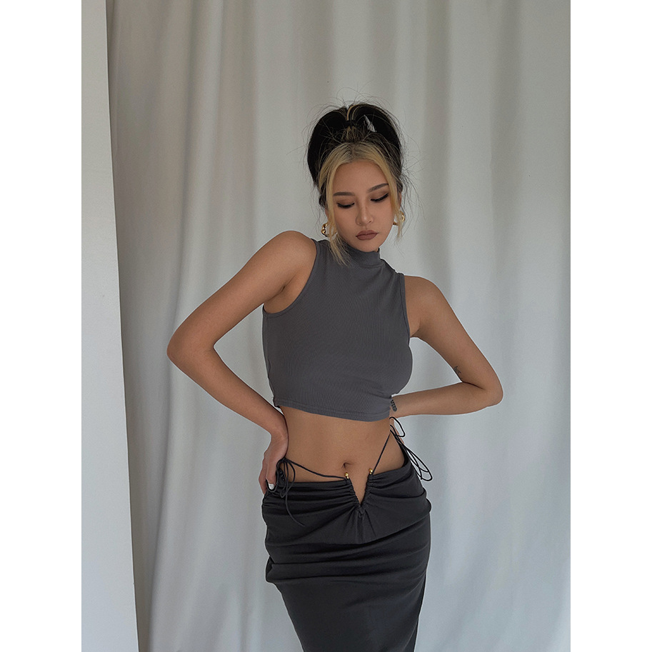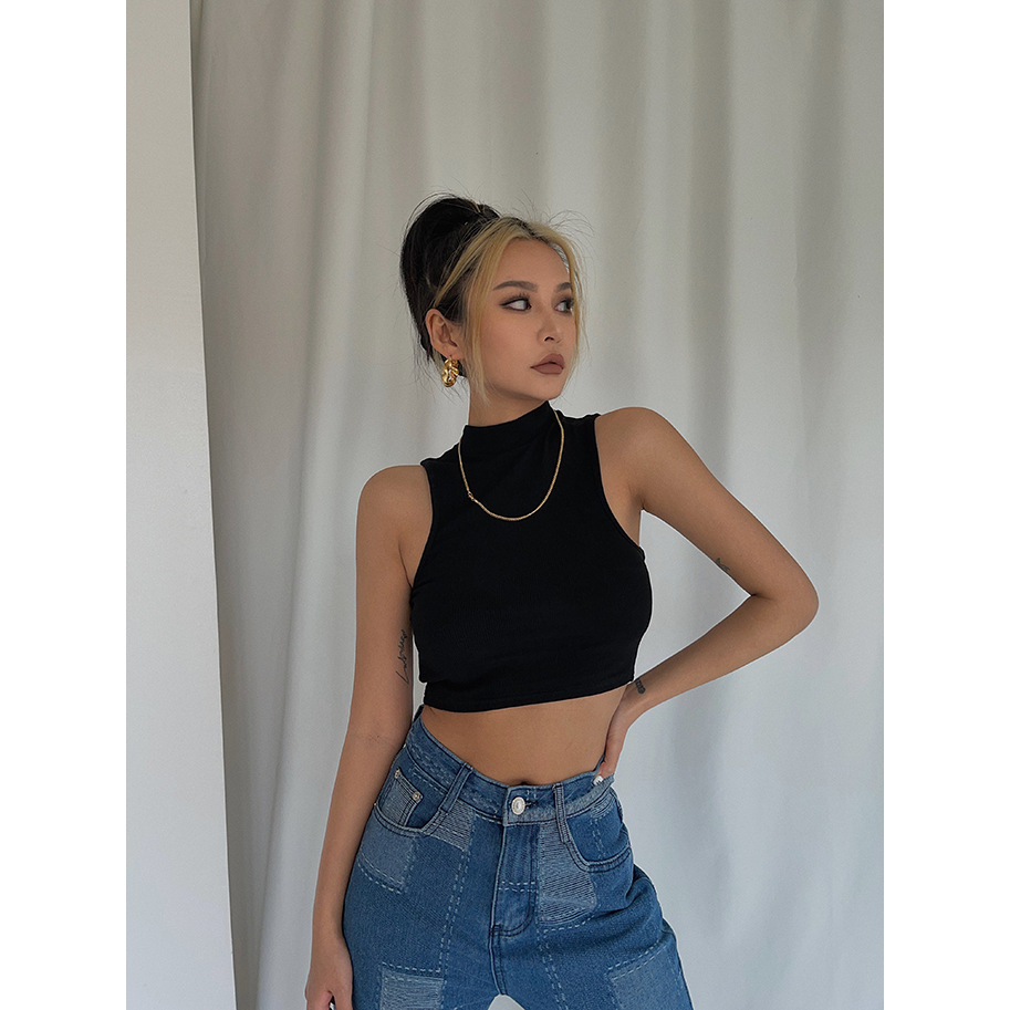 超性感卡戴珊小高领背心收腰显胸辣妹外穿短上衣弹力纯色简约百搭