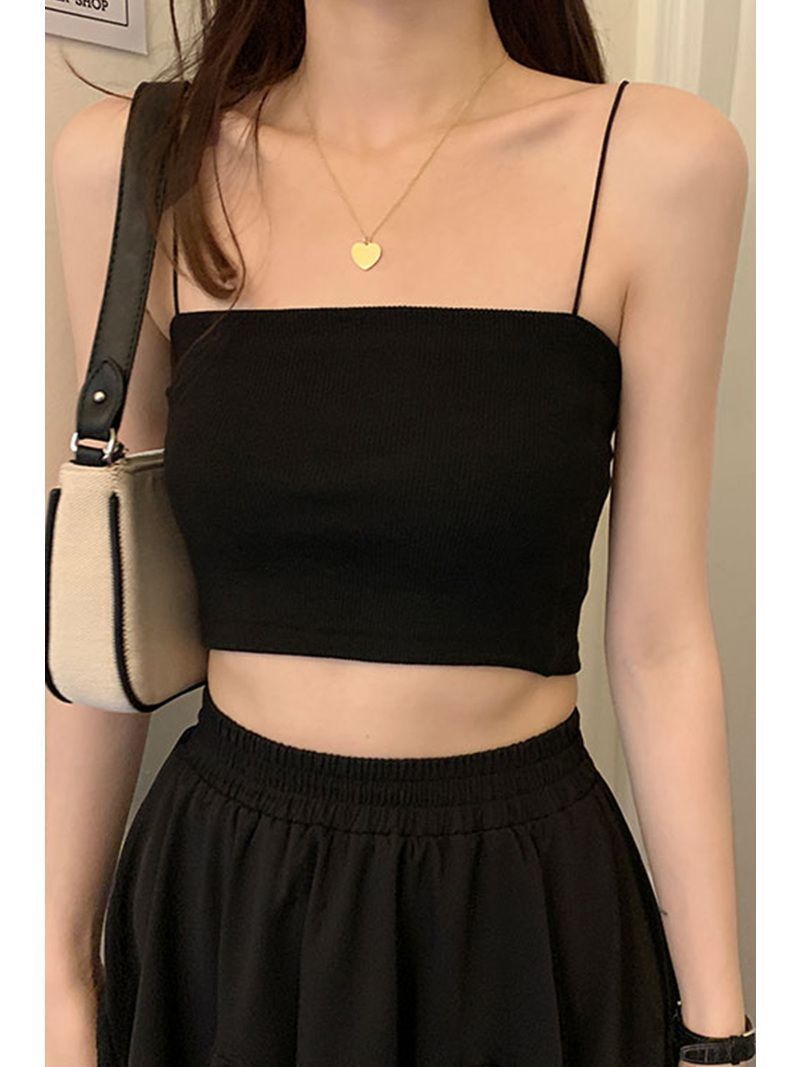 法式黑色小吊带背心女夏新款西装内搭外穿短款打底衫甜辣抹胸上衣