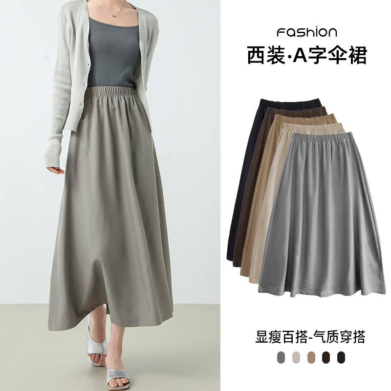 半身裙女春秋高级感蛋糕裙子高腰A字大摆裙时尚休闲中长款西装裙
