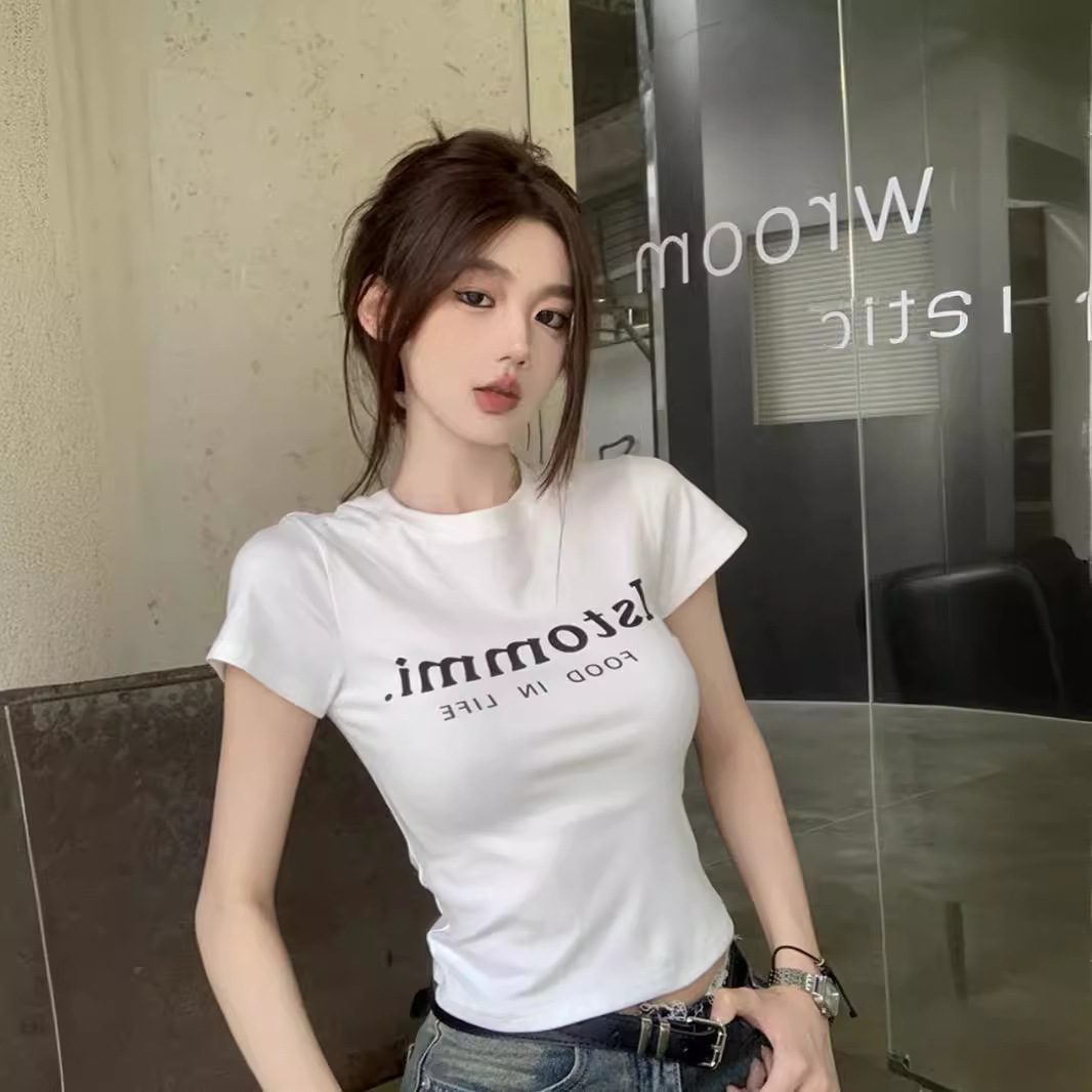 韩系字母印花白色短袖T恤女夏季新款设计感小众修身显瘦上衣chic