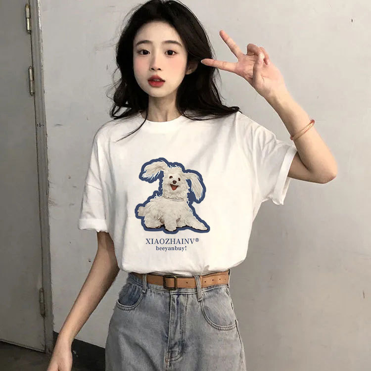 夏季新品韩版圆领宽松百搭气质鸭子洋气印花短袖T恤女小清新上衣