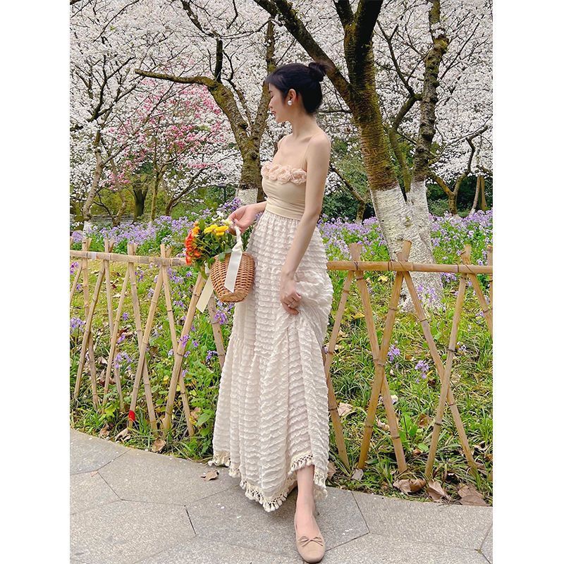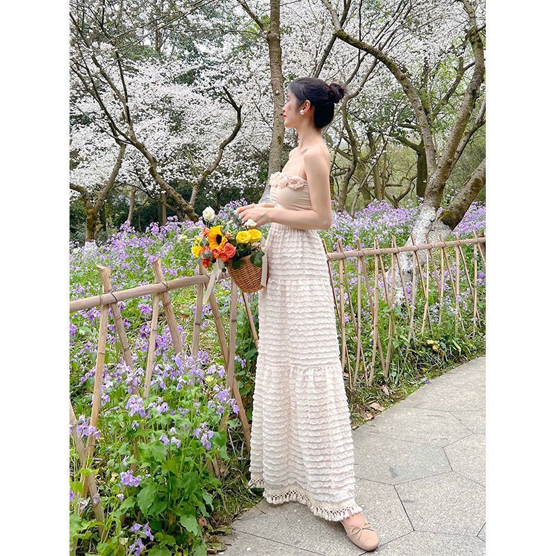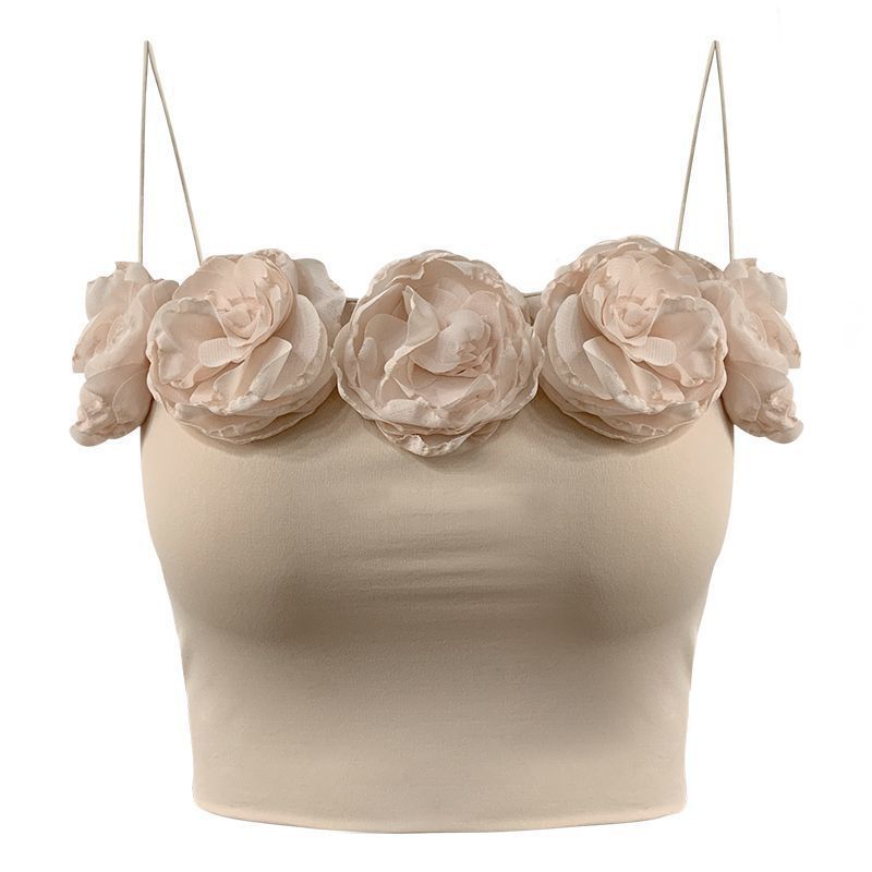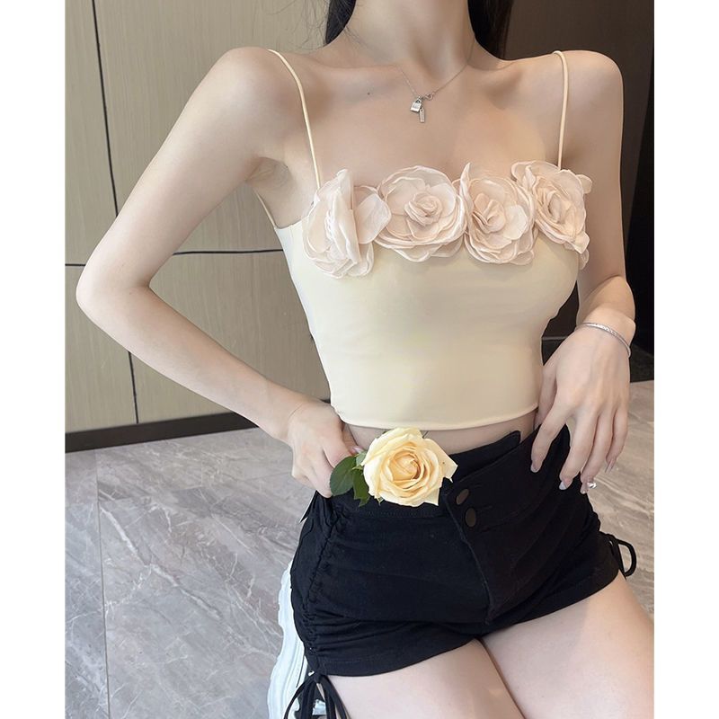 立体花朵小吊带背心夏季短款甜辣妹纯欲露肩性感上衣