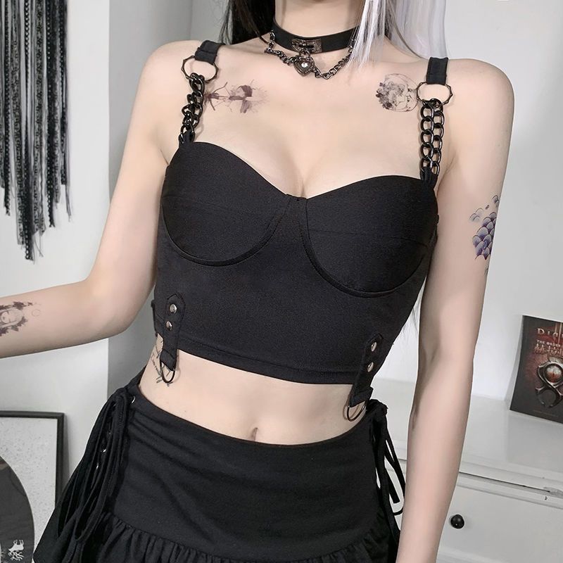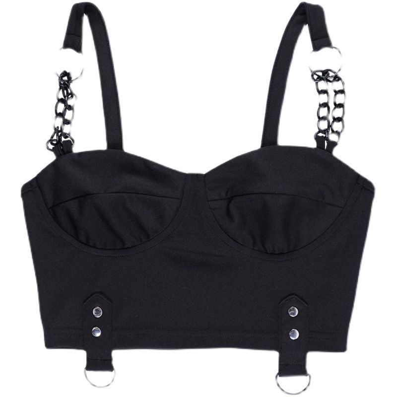 小众链条吊带夏天新款外穿辣妹性感黑色抹胸上衣女