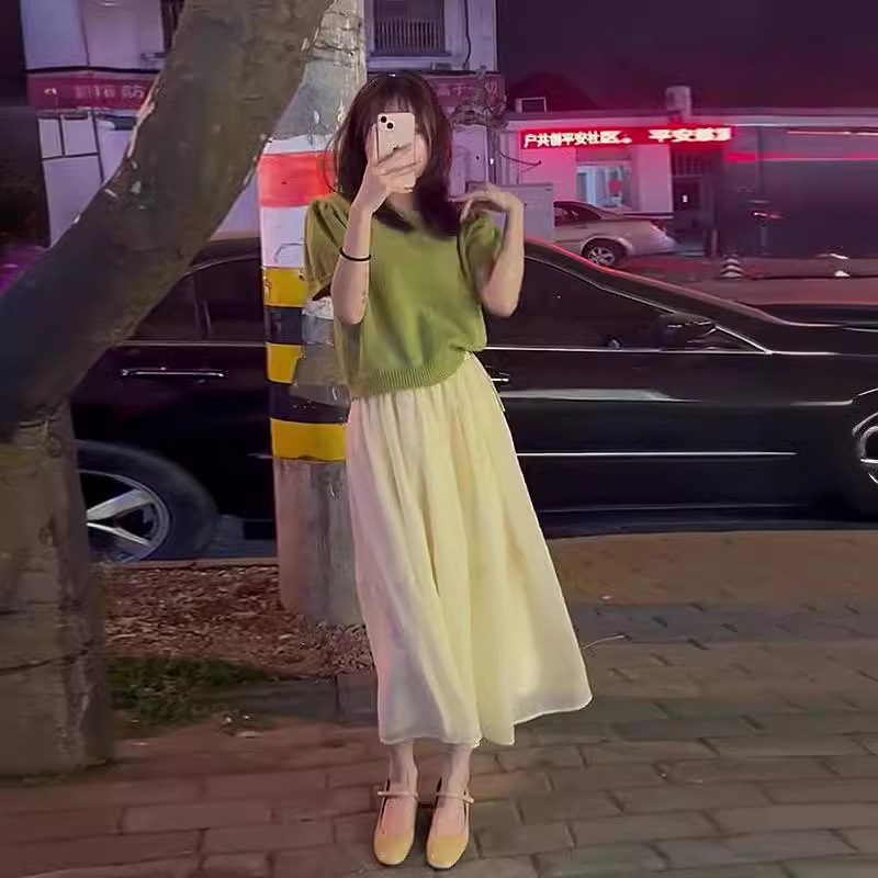 夏季新款小个子减龄洋气时尚套装显瘦针织上衣半身裙两件套装