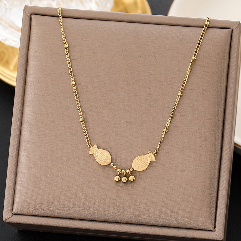 双鱼圆珠吊坠钛钢项链女百搭新款小众设计高级感精致锁骨链不掉色
