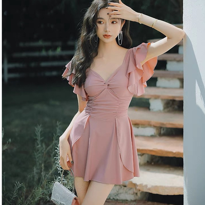【粉系】新泳衣女连体平角保守显瘦遮肚爆款裙式温泉大码泳装