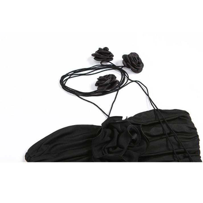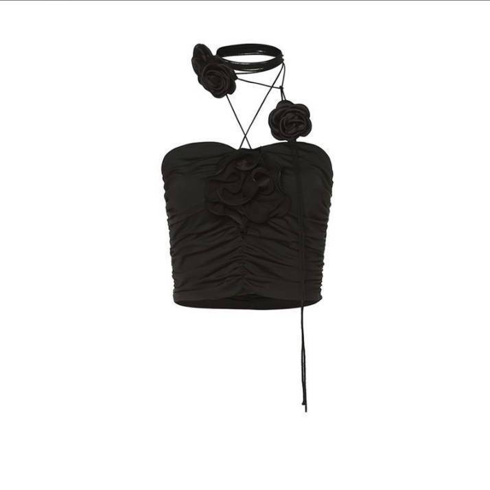 【来版可做】黑玫瑰小吊带背心女夏季新款镂空辣妹短款挂颈上衣女