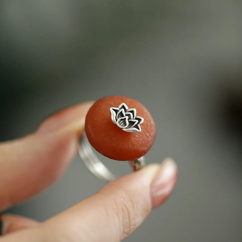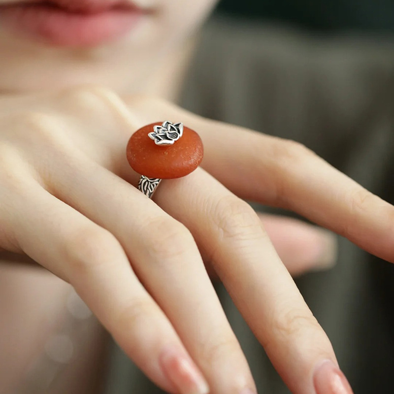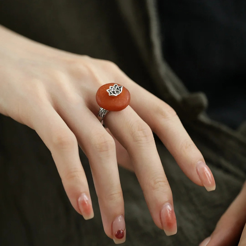 柿柿如意天然蜜蜡戒指民国新中式饰品做旧莲花平安扣老蜡食指戒女