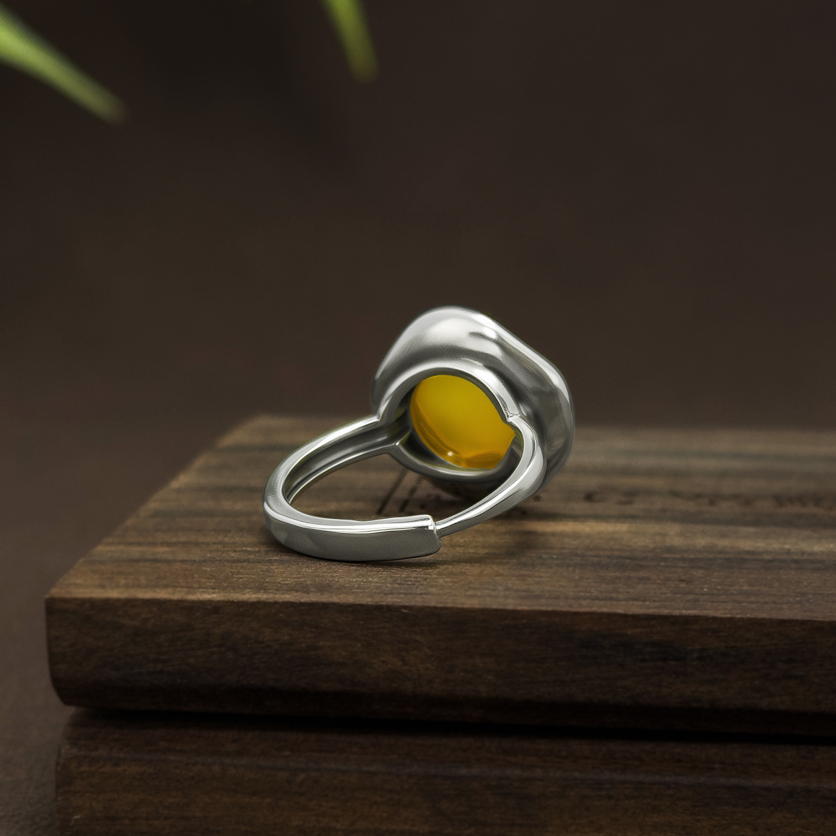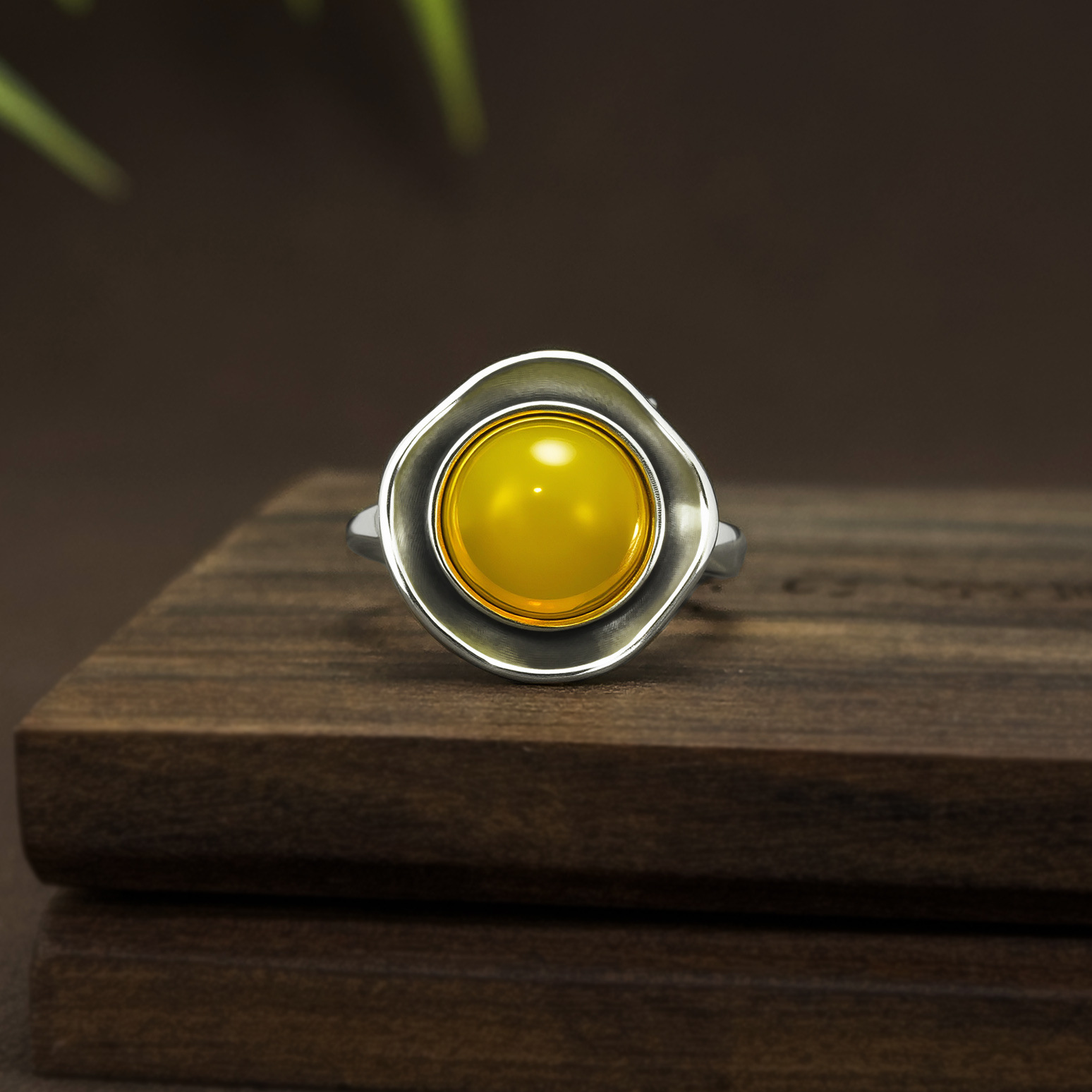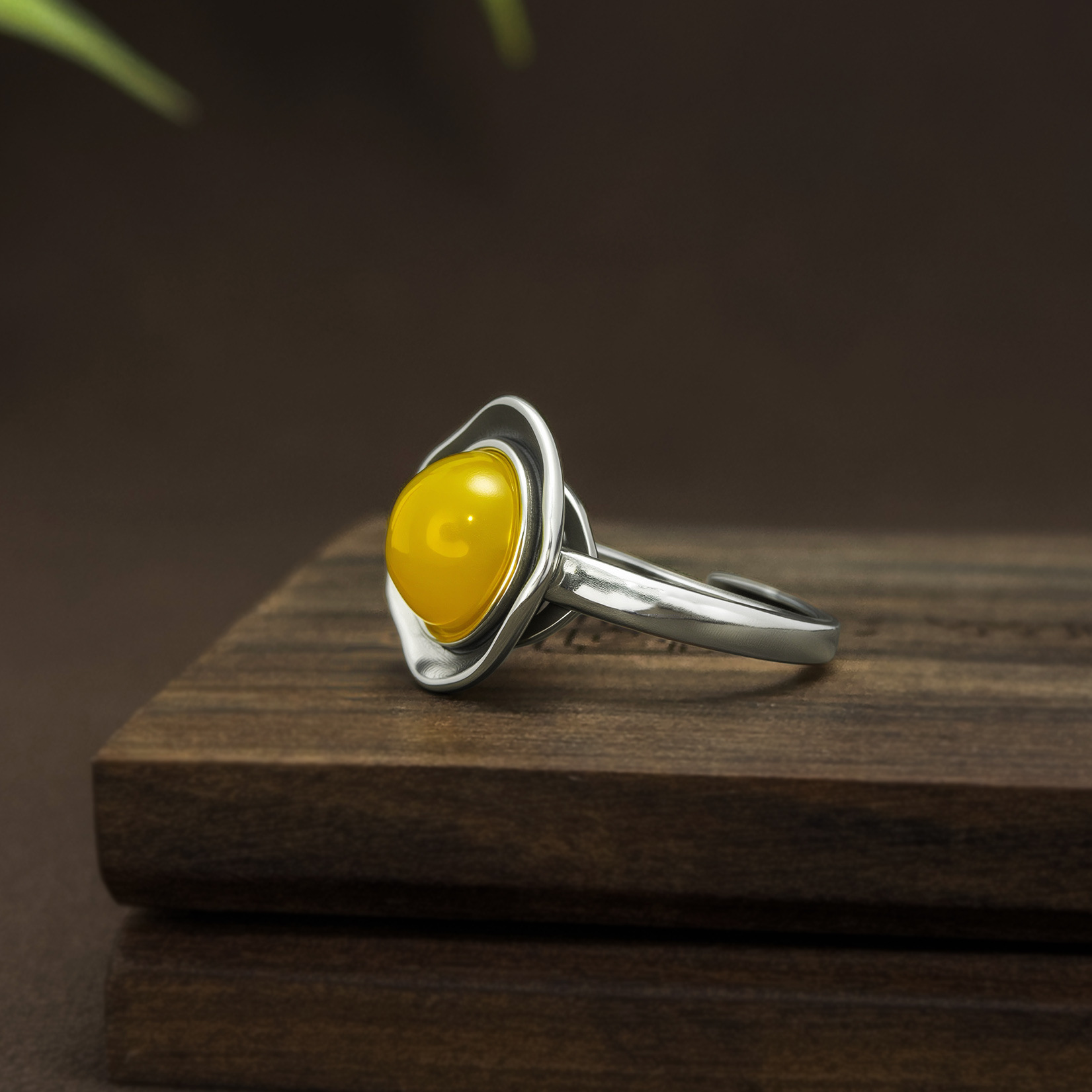 仿蜜腊蛋面戒指女轻奢复古风做旧款荷包蛋食指戒小众设计国风配饰