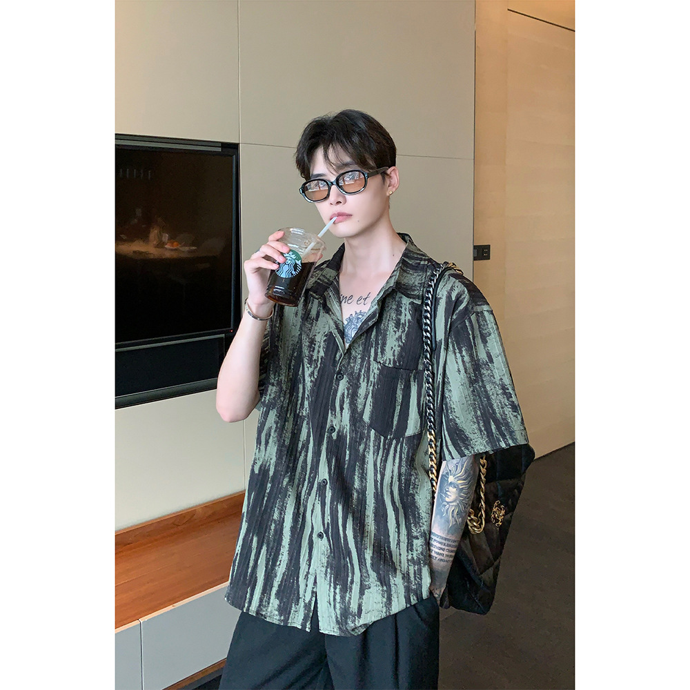 小众复古泼墨设计感短袖衬衫男夏季新款宽松痞帅高级衬衣上衣