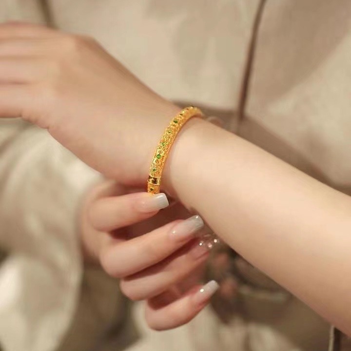 原创设计纯银s925镀18K黄金镶嵌手镯花丝镂空镯子女款送妈妈苏工