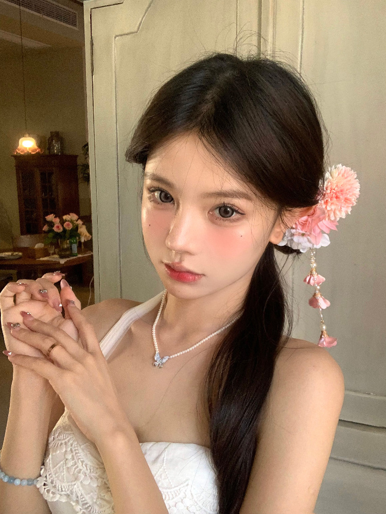 超仙森系铃兰花流苏发夹女新中式头饰花朵侧边夹拍照道具新娘发饰