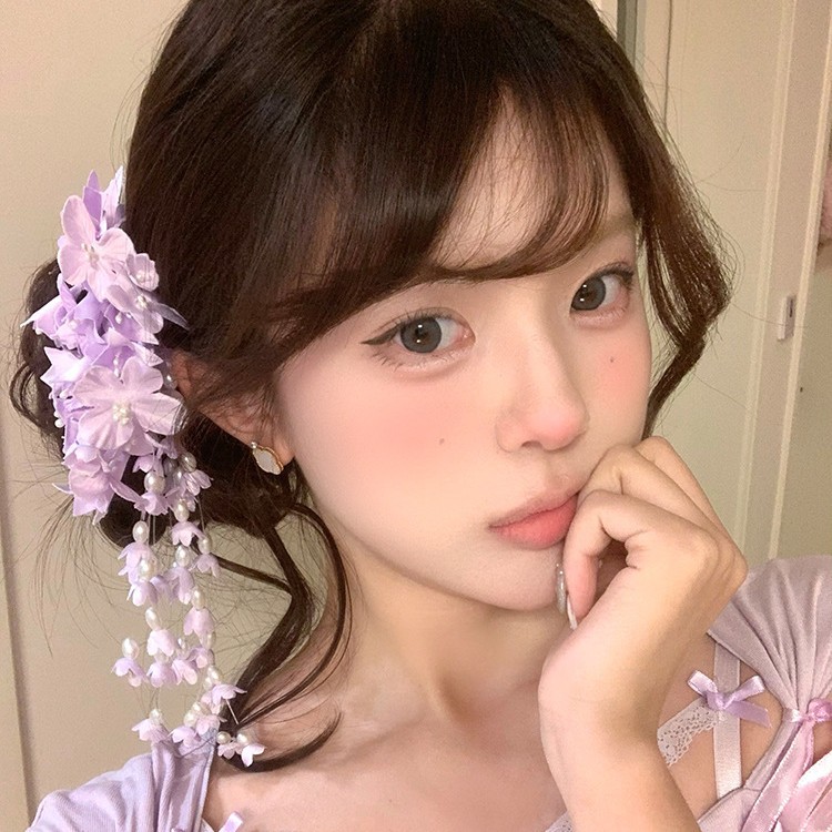 - 3#淡紫色铃兰花流苏发夹(HA0524)