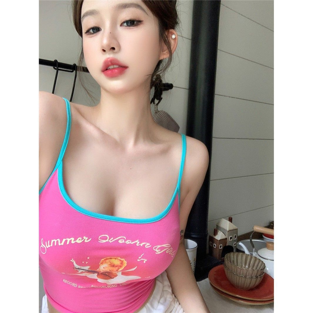 辣妹性感吊带背心休闲打底衫纯欲显瘦印花短款上衣