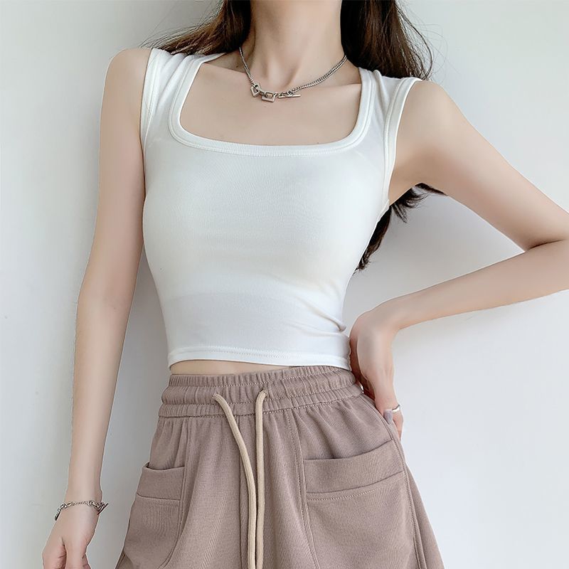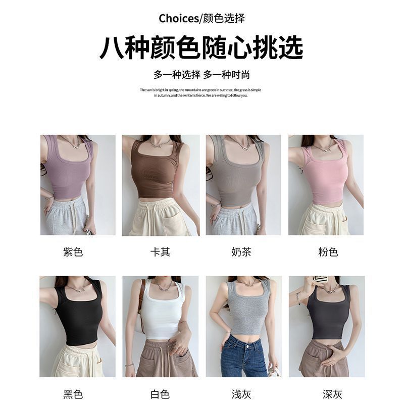 纯欲白色t恤2025新款修身显瘦方领辣妹上衣背心吊带