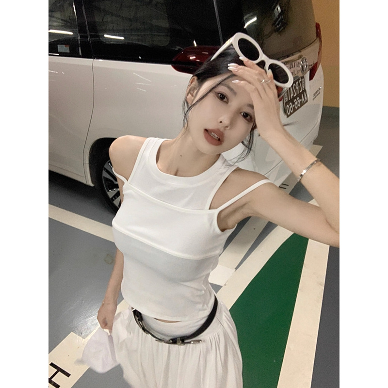假两件外穿黑色小背心吊带女夏季辣妹短款无袖修身白色打底上衣