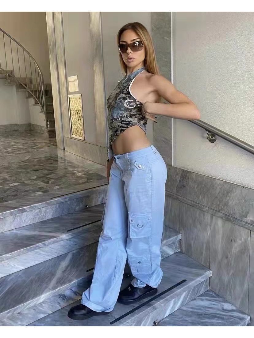 铭海美式辣妹工装裤女秋季新款高腰显瘦宽松微辣牛仔裤女长裤