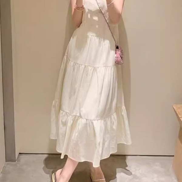 夏季新款 拼接背心连衣裙小个子高档气质长裙