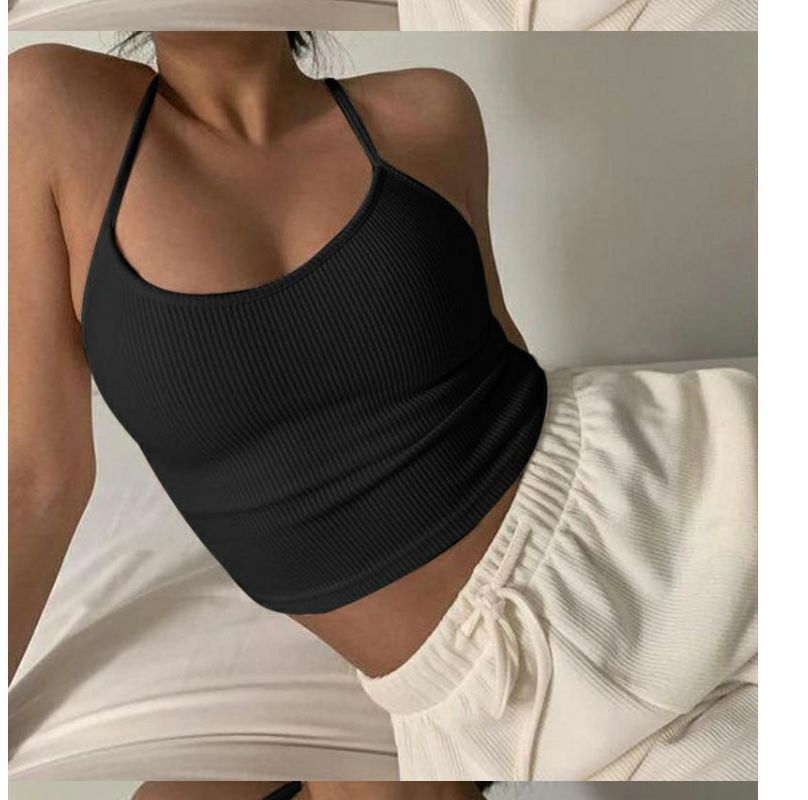 简约露背性感交叉吊带背心女夏季修身短款打底上衣潮
