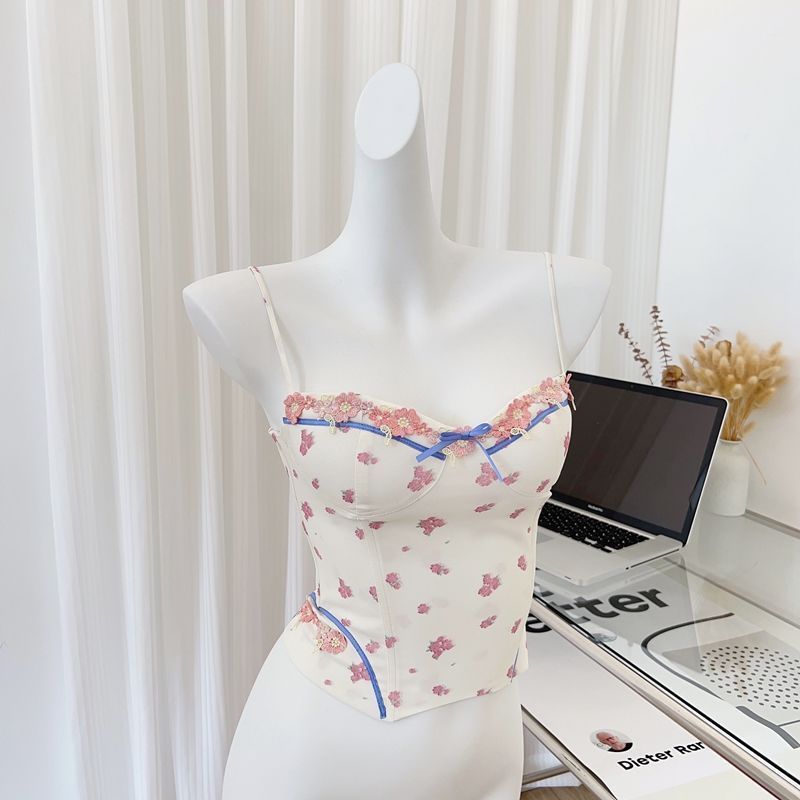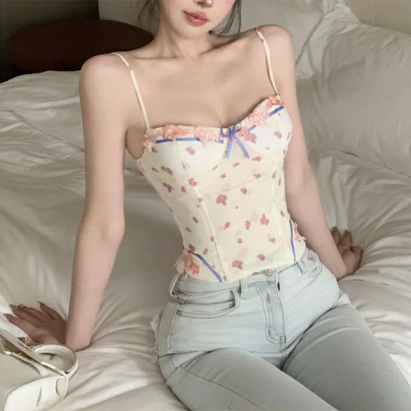 小众印花嗲嗲吊带背心夏款修身内搭性感无袖上衣女